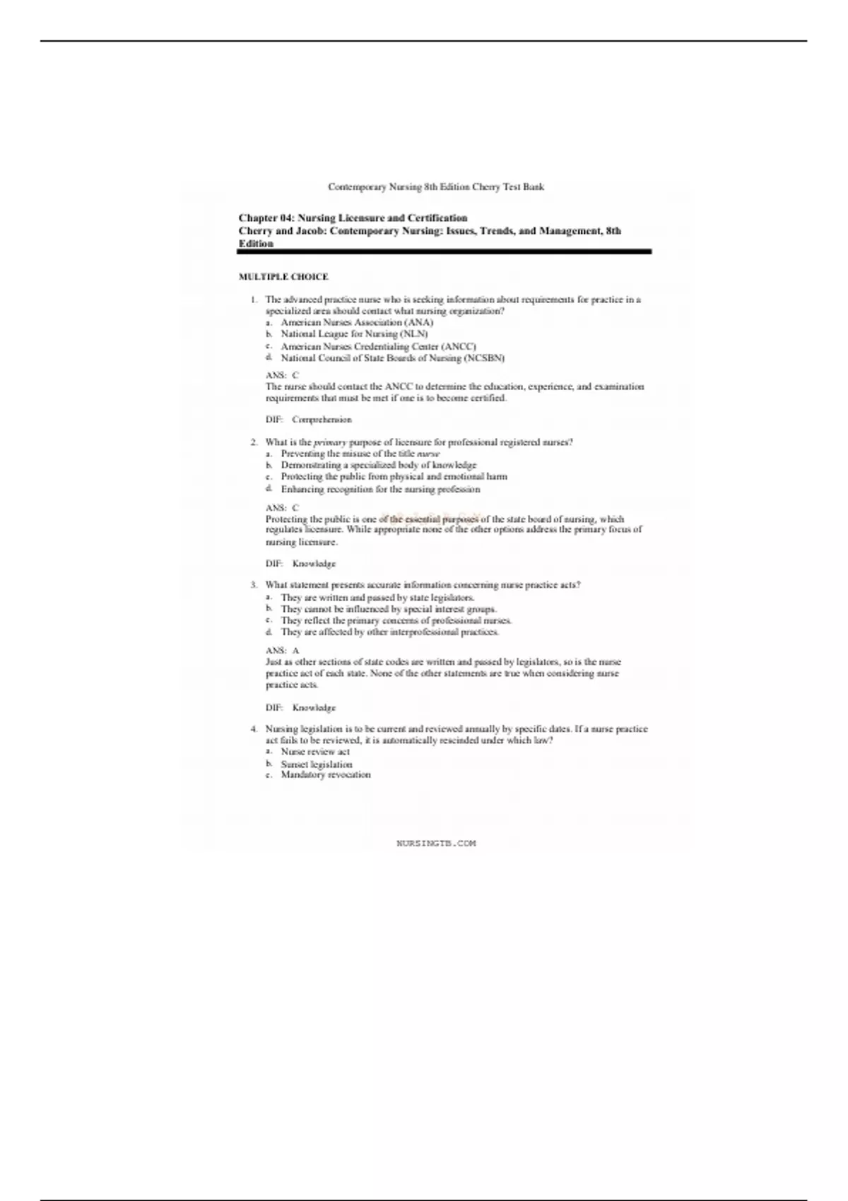 Nurs 104 - Contemporary Nursing test bank