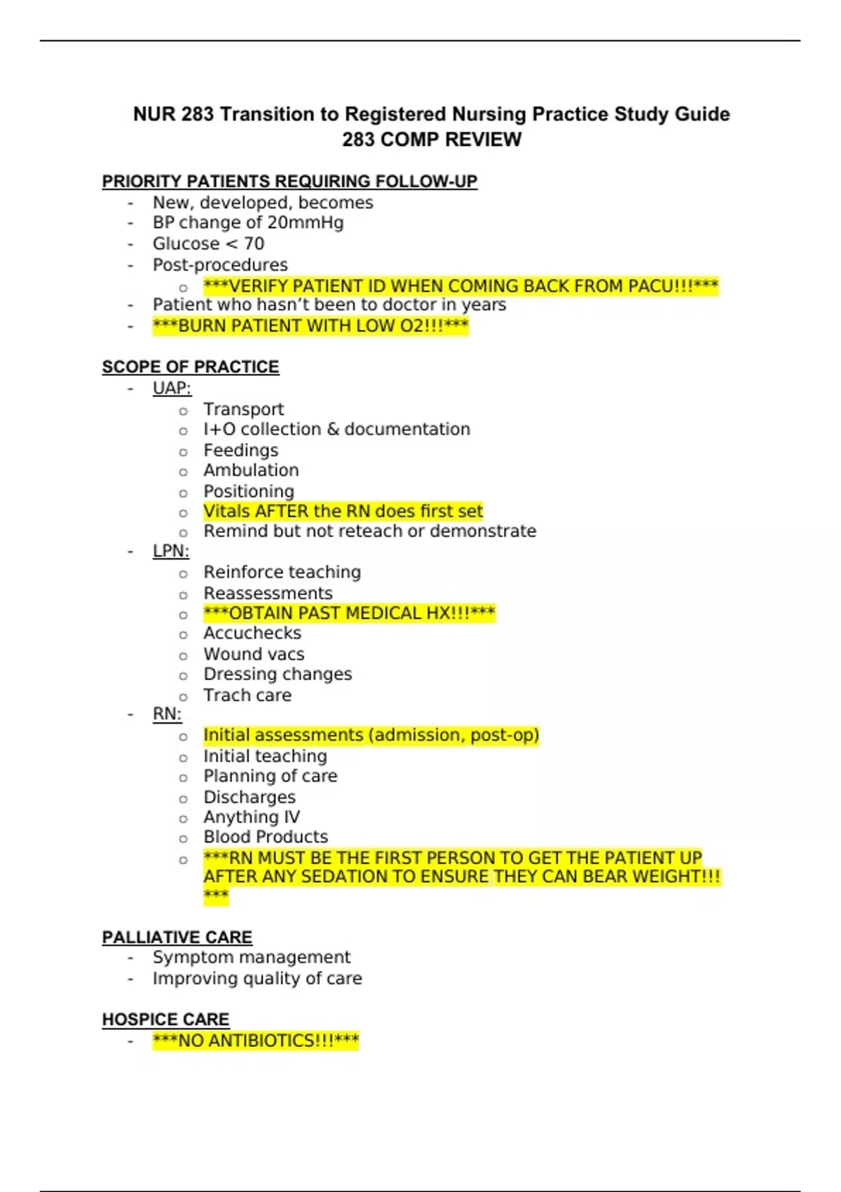 NUR 283 Transition to Registered Nursing Practice Study Guide.