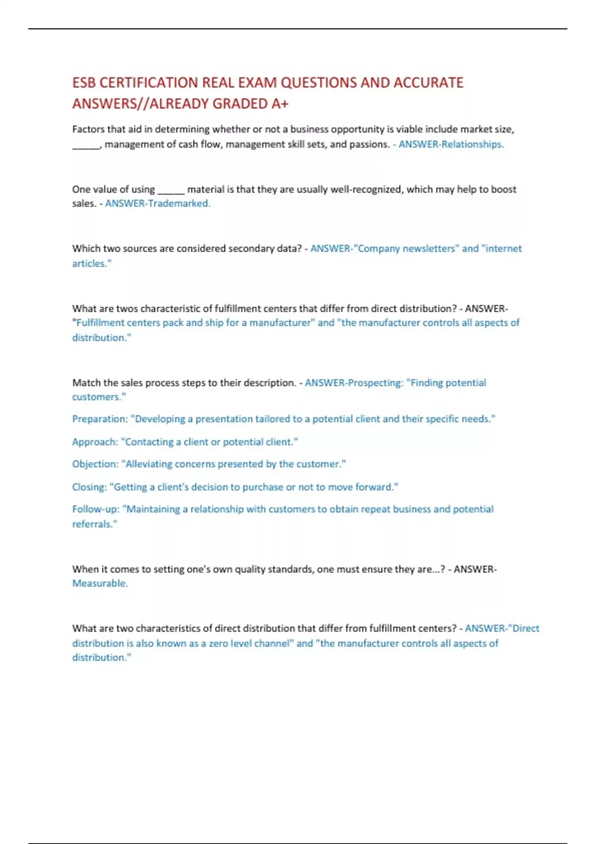 ESB CERTIFICATION REAL EXAM QUESTIONS AND ACCURATE ANSWERS//ALREADY GRADED A+