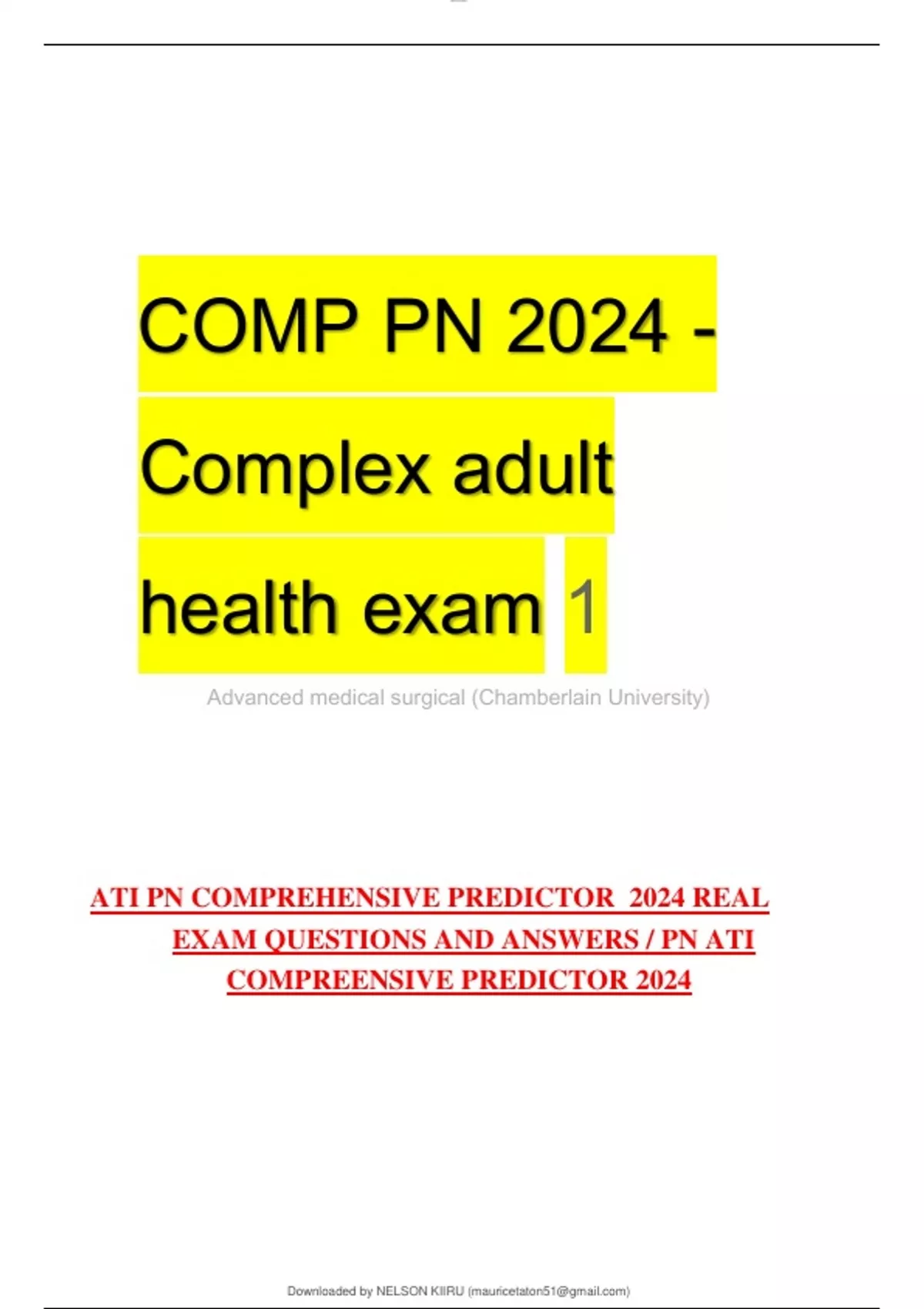 ATI PN COMPREHENSIVE PREDICTOR 2024 REAL EXAM QUESTIONS AND ANSWERS / PN ATI COMPREENSIVE PREDICTOR 2024