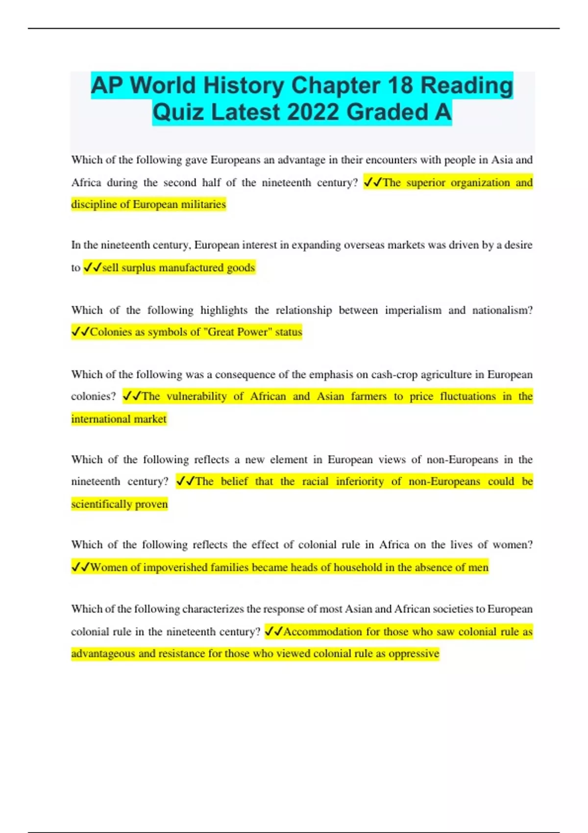 AP World History Chapter 18 Reading Quiz Latest 2022 Graded A
