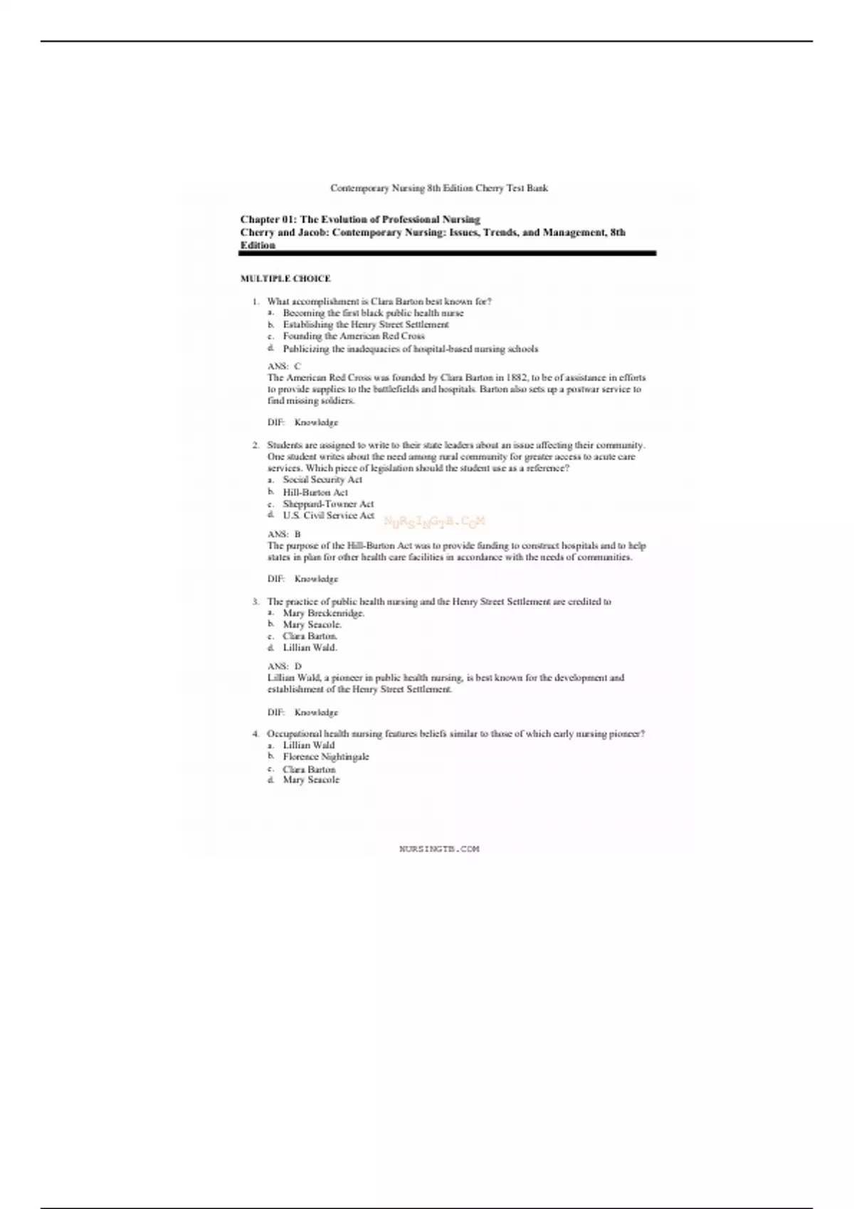 This is a detailed, quality and well sorted out test bank on chapter 1 ; Evolution of professional Nursing for Nur 104. Basically test questions that will most likely be on the test