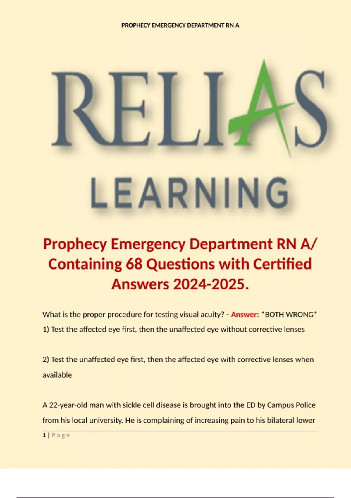 , PROPHECY EMERGENCY DEPARTMENT RN A