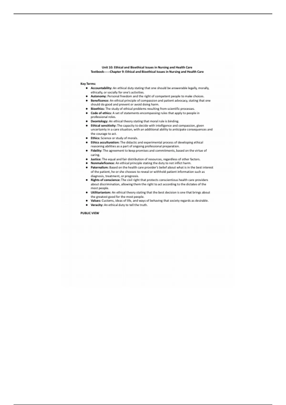 This is a comprehensive and detailed summary for Nurs 104 with focus on Unit 10; Ethical and bioethical issues in Nursing and healthcare in the book Contemporary Nursing by Barbara Cherry. U can't afford to miss this, Cuz it will help you ace your exams and boost your grades, at price a that's worth it!! The Price won't last long!! Don't be late!!