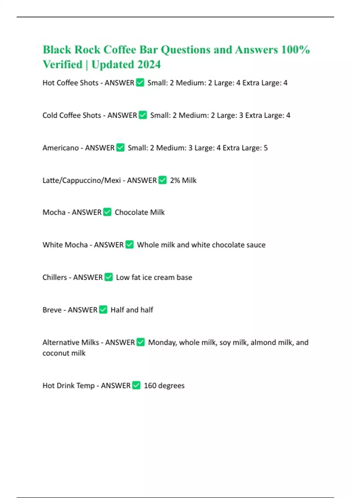 Black Rock Coffee Bar Questions and Answers 100% Verified | Updated 2024