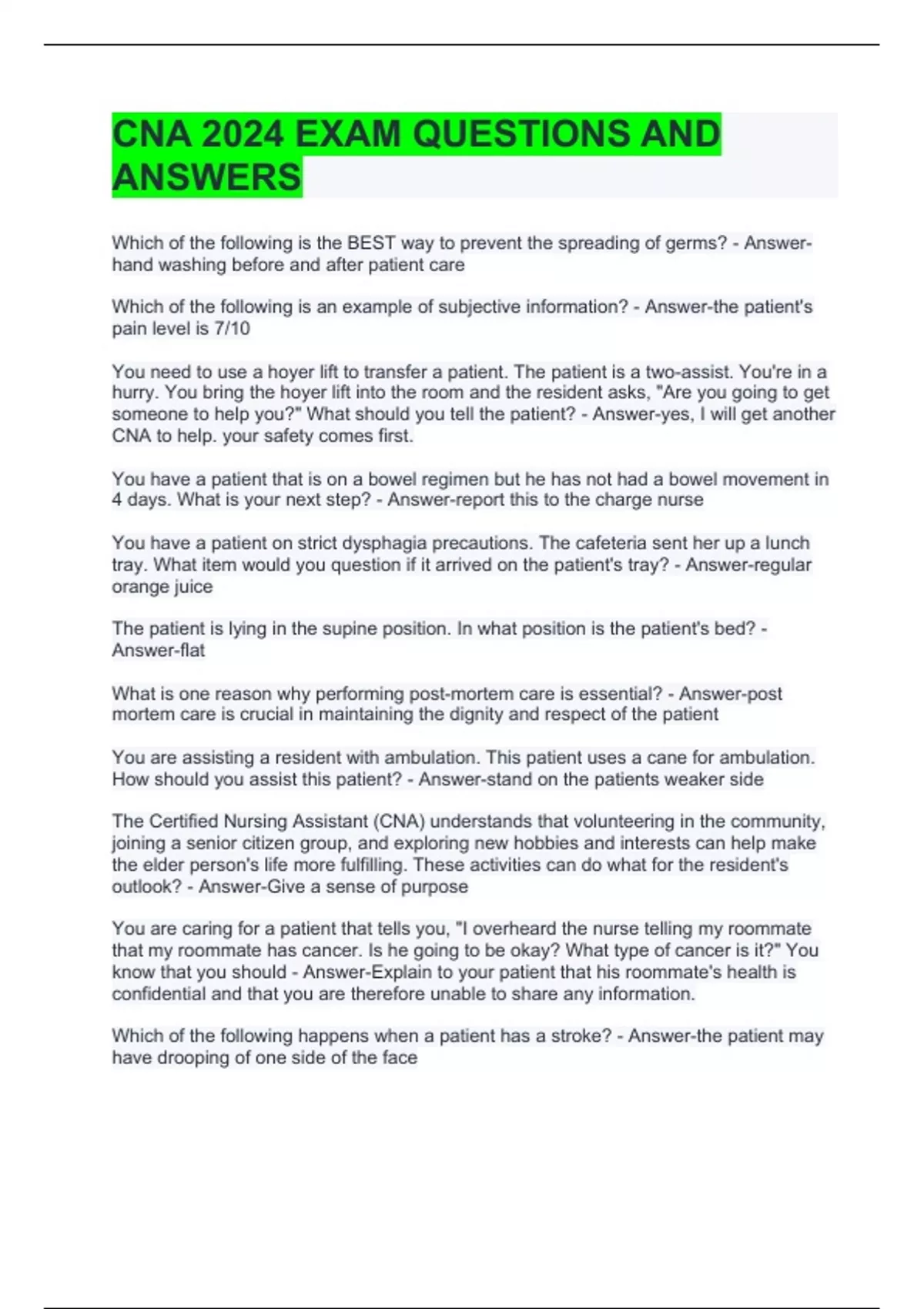 CNA 2024 EXAM QUESTIONS AND ANSWERS