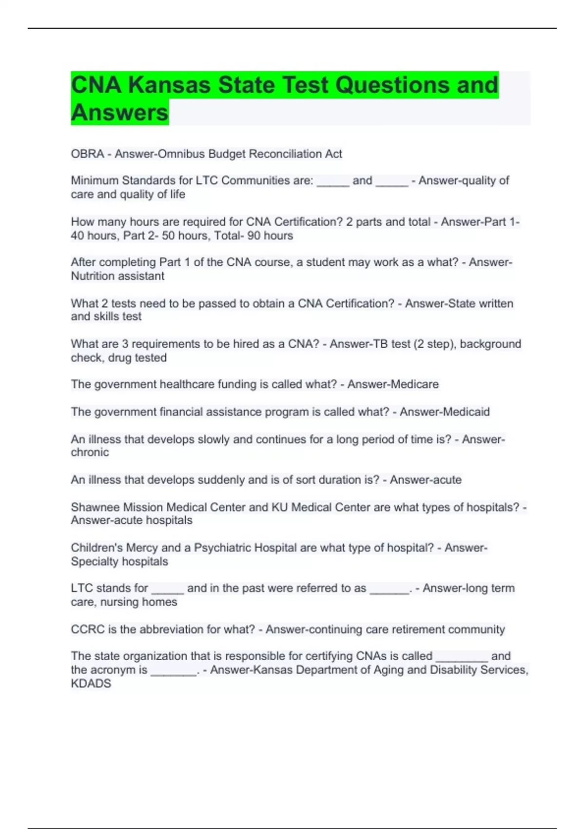 ( CNA ) CERTIFIED NURSING ASSISTANT EXAM BUNDLE (100% GURANTEED PASS )