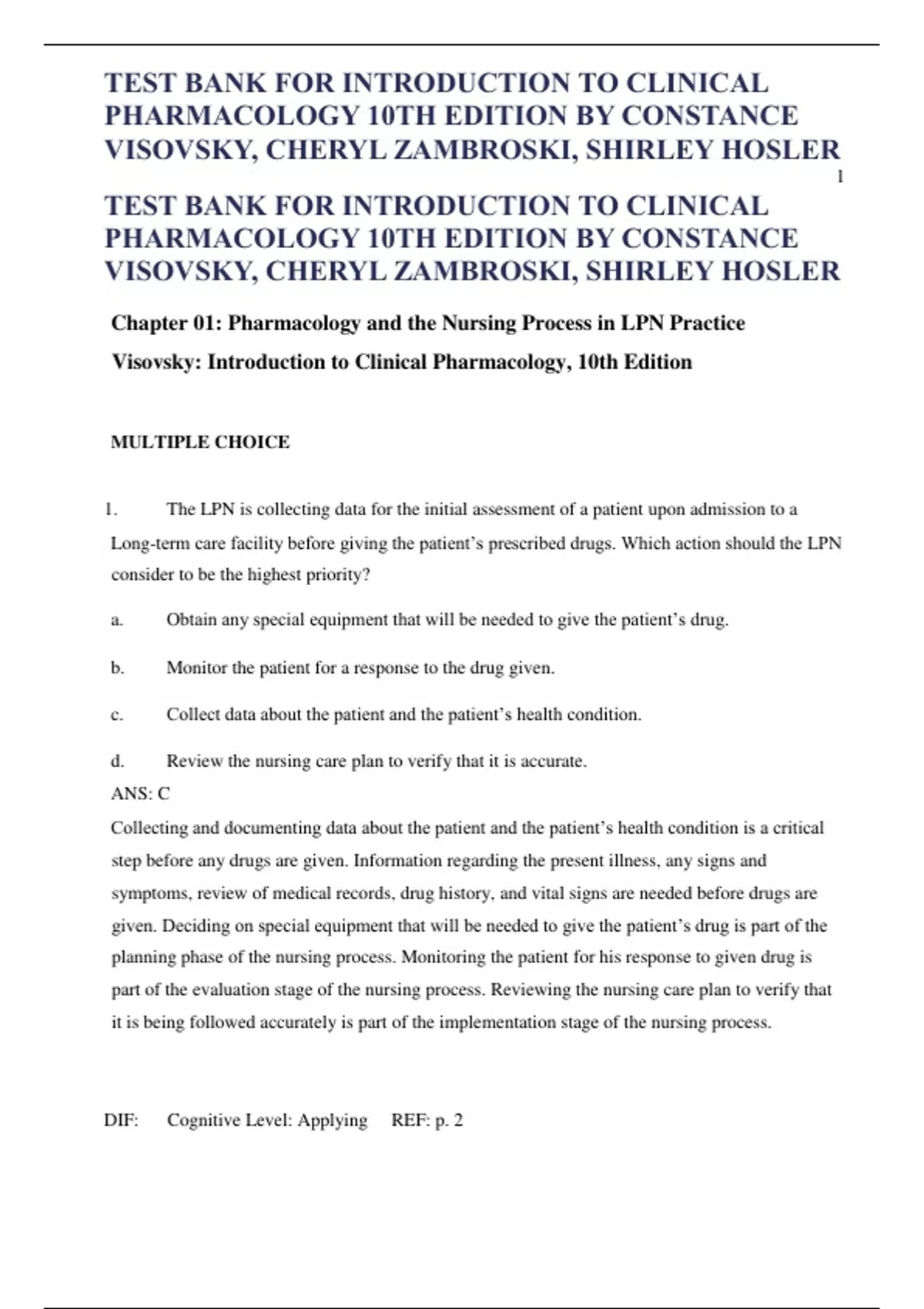 Chapter 01: Pharmacology and the Nursing Process in LPN Practice