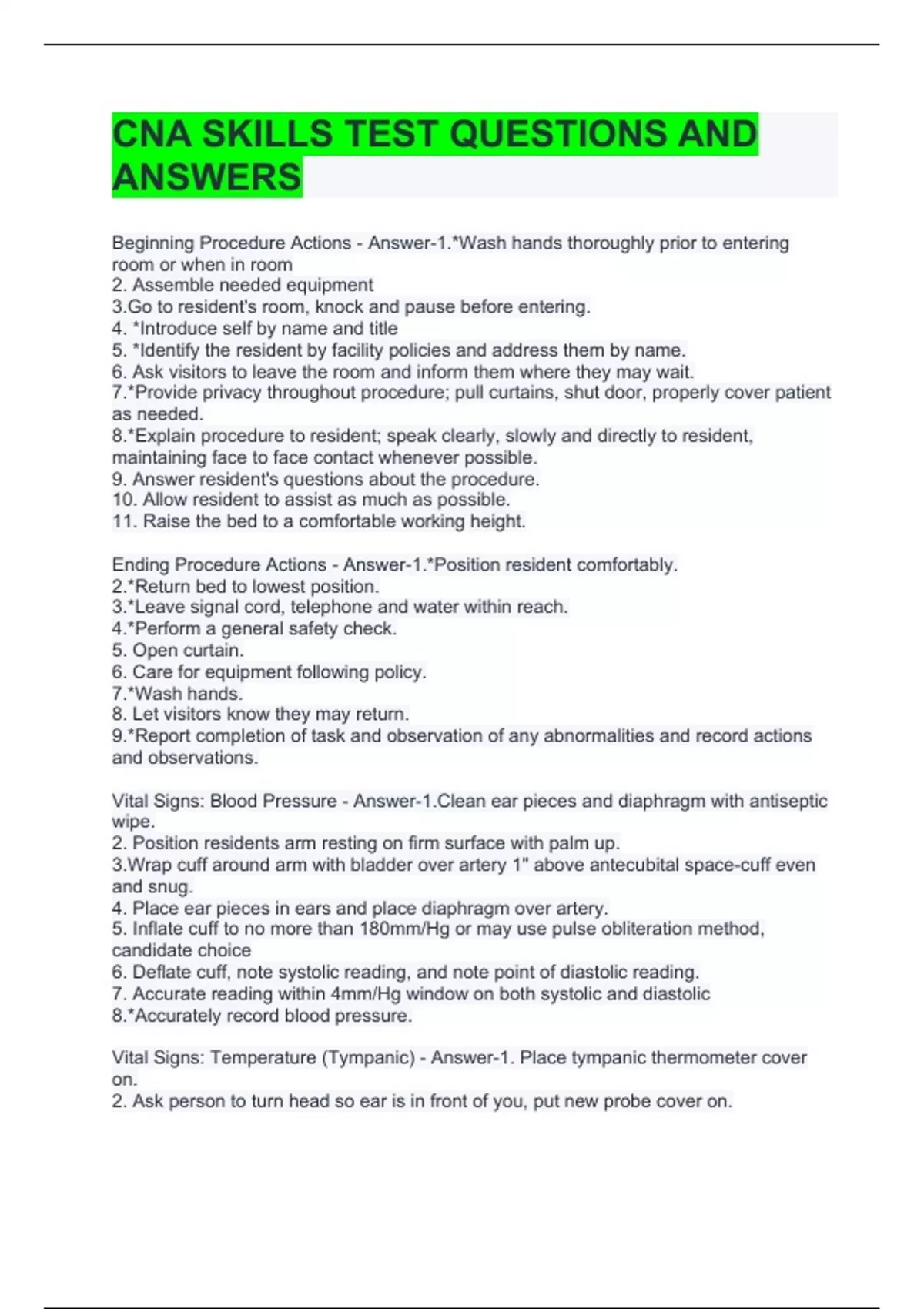 CNA SKILLS TEST QUESTIONS AND ANSWERS