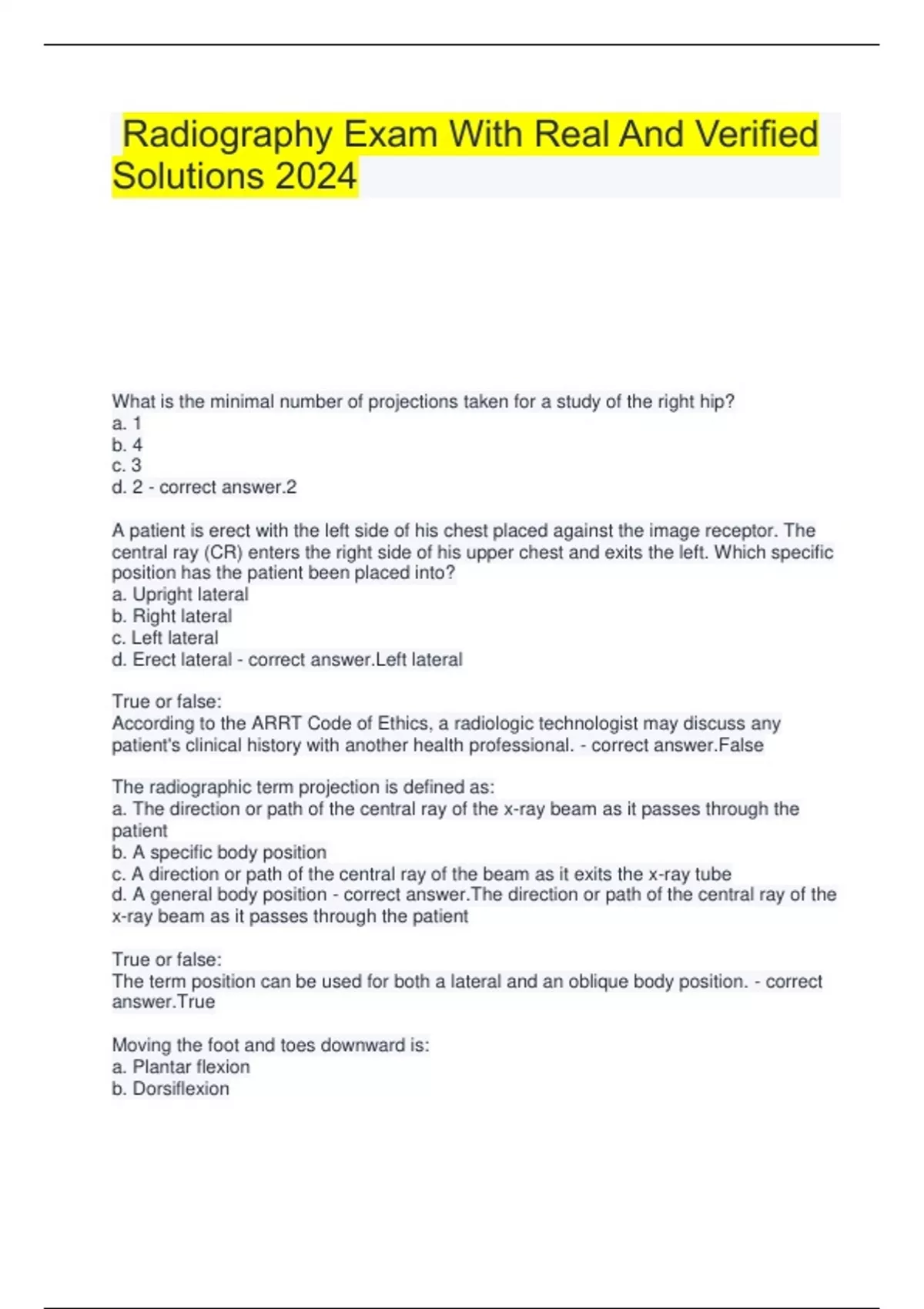 radiography exam with real and verified solutions