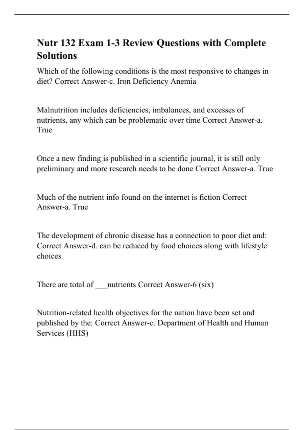 Nutr 132 Exam 1-3 Review Questions with Complete Solutions