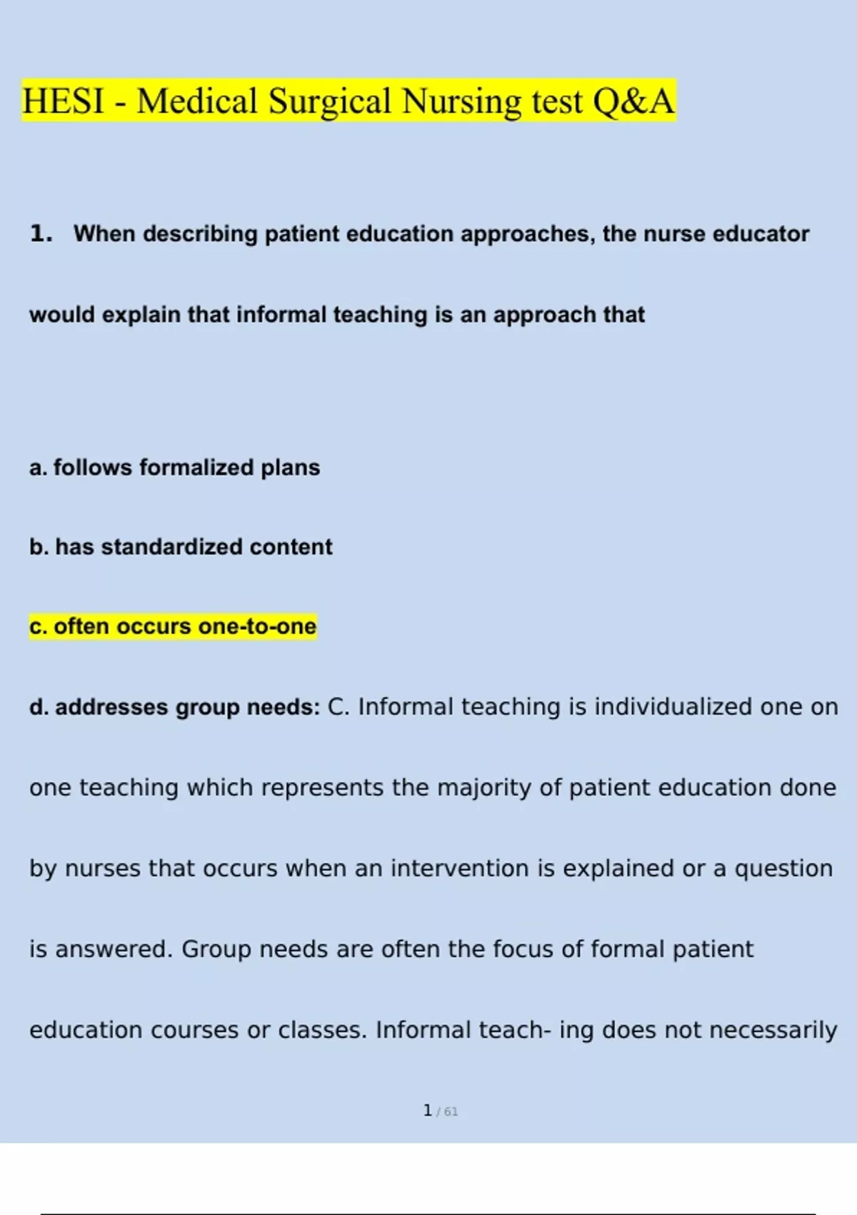 HESI - Medical Surgical Nursing test questions and answers verified 2024