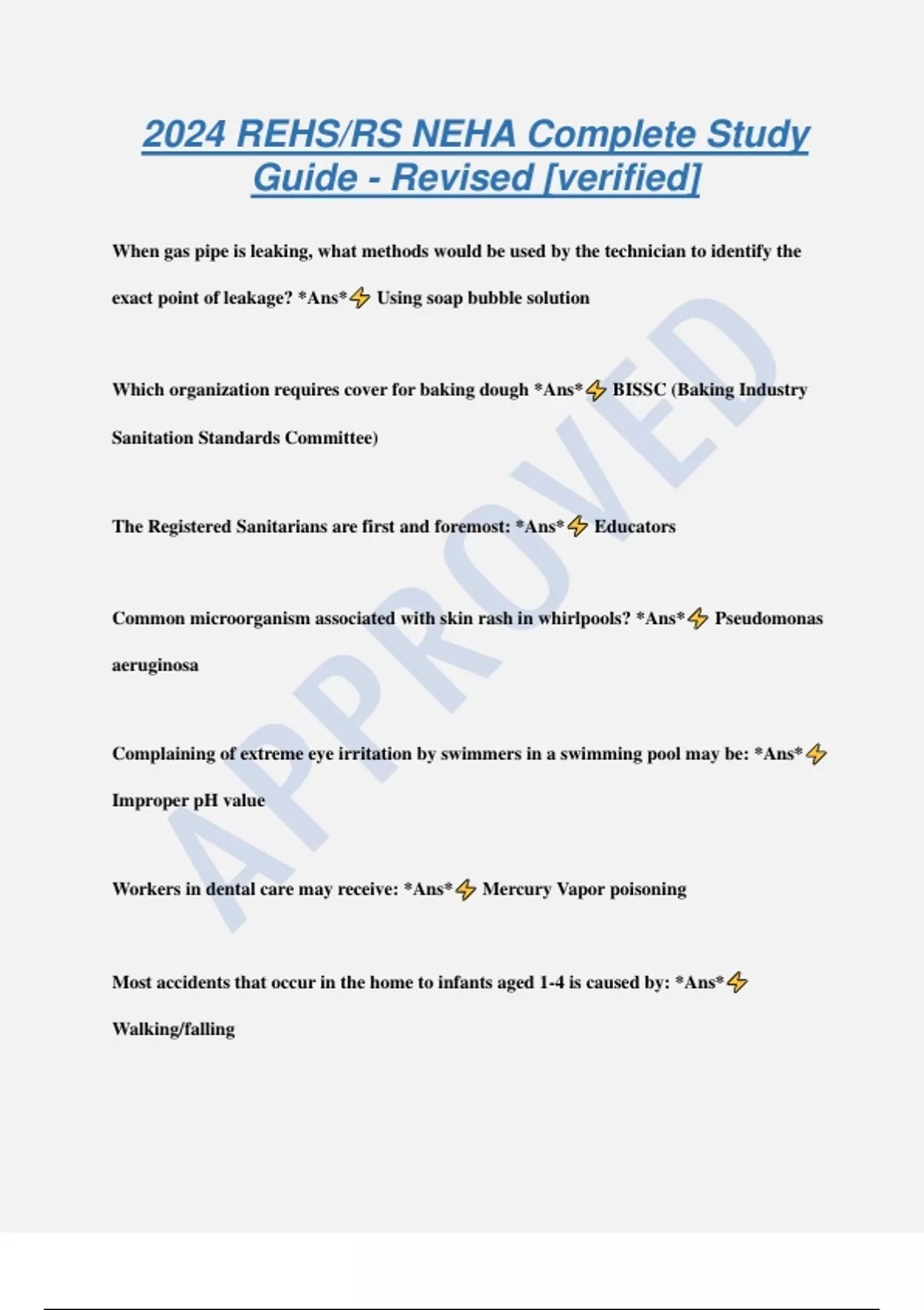 2024 REHS/RS NEHA Complete Study Guide - Revised [verified]