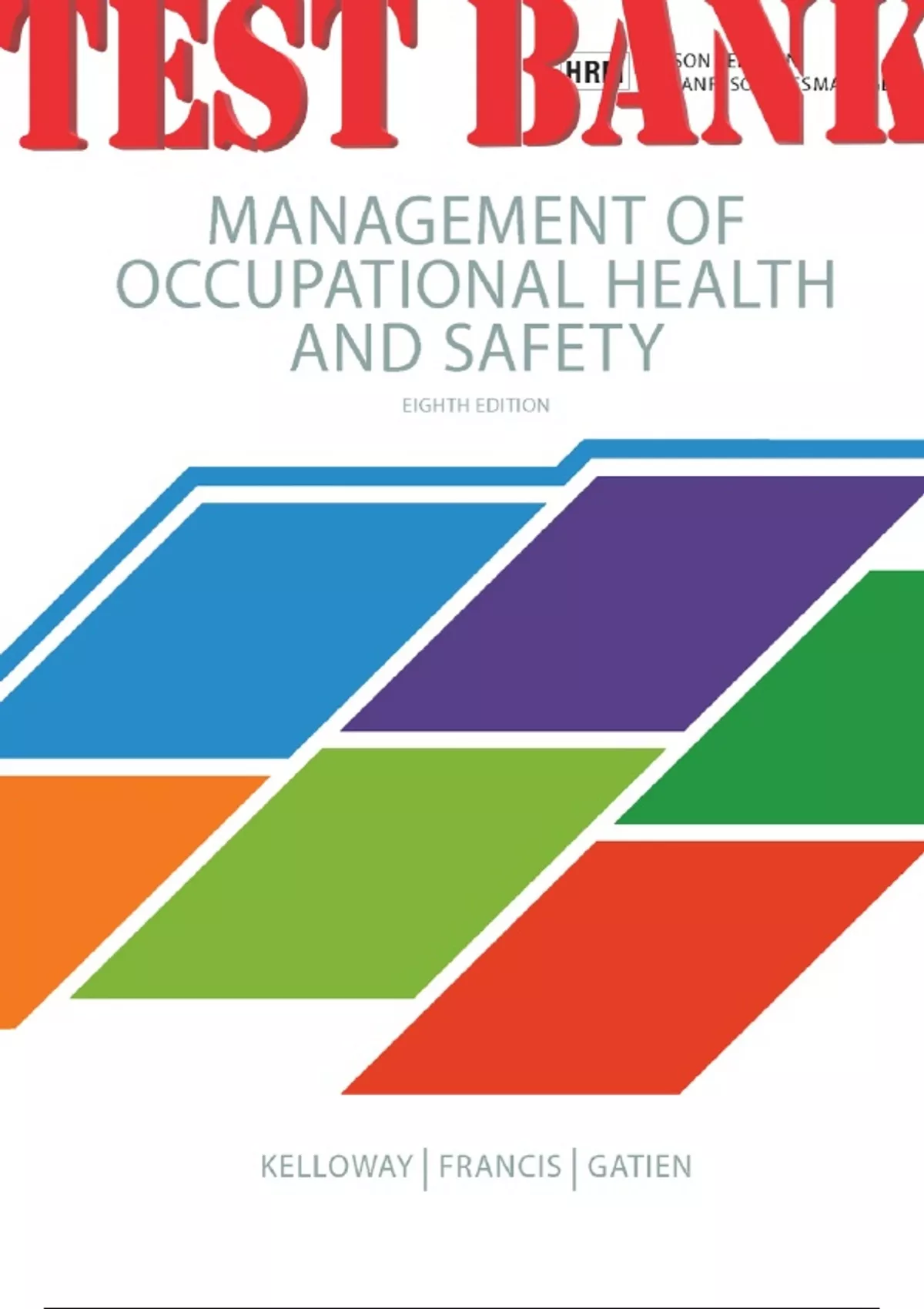 TEST BANK for Management of Occupational Health & Safety, 8th Edition By Kevin Kelloway, Lori Francis, Bernadette Gatien TABLE OF CONTENTS: Chapter 1: Introduction Chapter 2: Legislative Framework Chapter 3: Workers’ Compensation Chapter 4: Hazards, Risks, and Control Chapter 5: Physical Agents Chapter 6: Biological and Chemical Agents Chapter 7: Psychosocial Hazards Chapter 8: Workplace Violence, Aggression, and Harassment Chapter 9: Training Chapter 10: Motivation And Safety Management Systems Chapter 11: Emergency Planning Chapter 12: Incident Investigation Chapter 13: Disability Management and Return to Work Chapter 14: Workplace Wellness: Work—Family and Health Promotion Programs