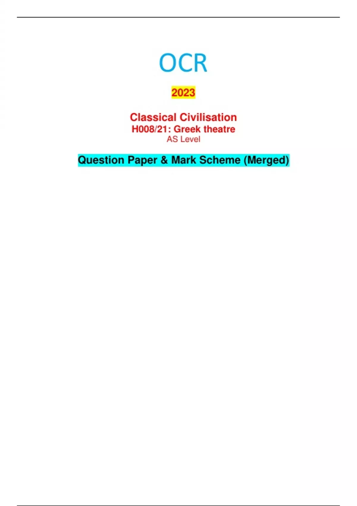 OCR 2023 Classical Civilisation H008/21: Greek theatre AS Level Question Paper & Mark Scheme (Merged)