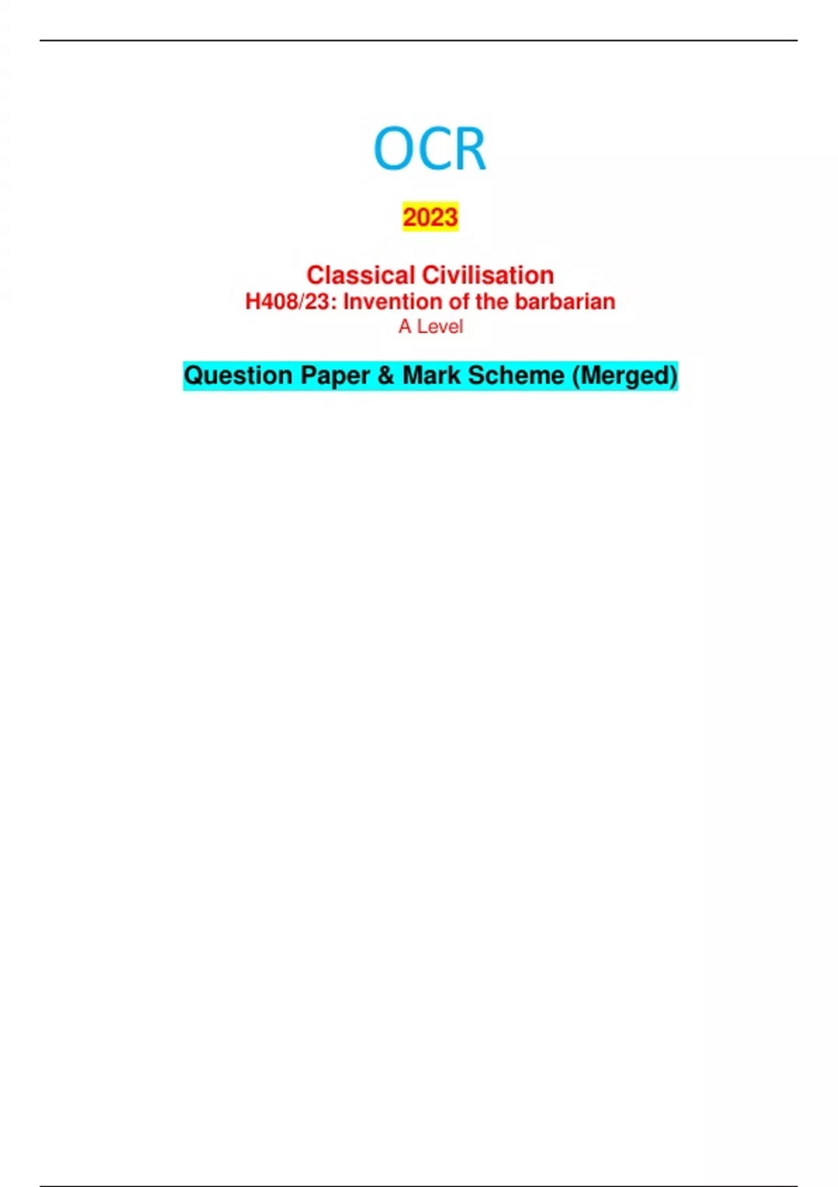 OCR 2023 Classical Civilisation H408/23: Invention of the barbarian A Level Question Paper & Mark Scheme (Merged