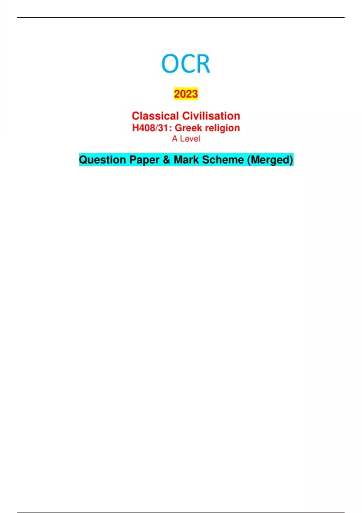 OCR 2023 Classical Civilisation H408/31: Greek religion A Level Question Paper & Mark Scheme (Merged)