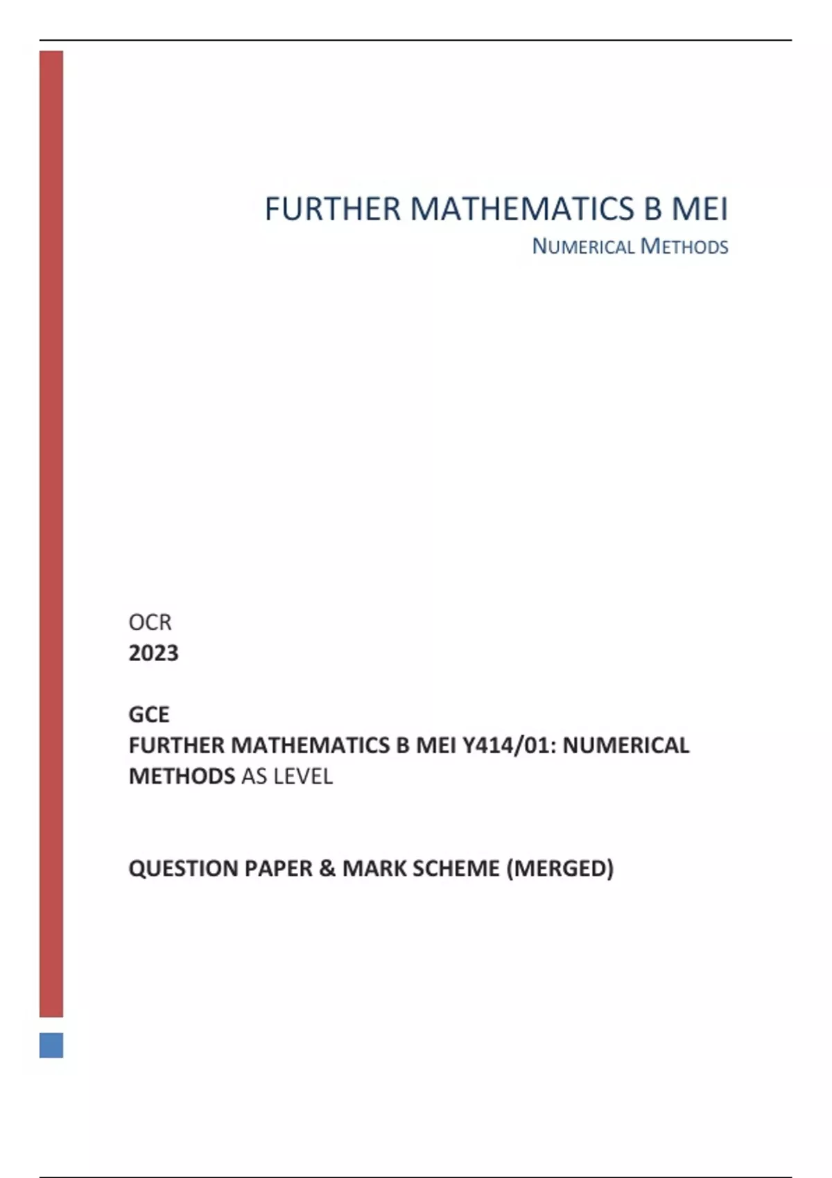 OCR 2023 GCE FURTHER MATHEMATICS B MEI Y414/01: NUMERICAL METHODS AS LEVEL QUESTION PAPER & MARK SCHEME (MERGED)