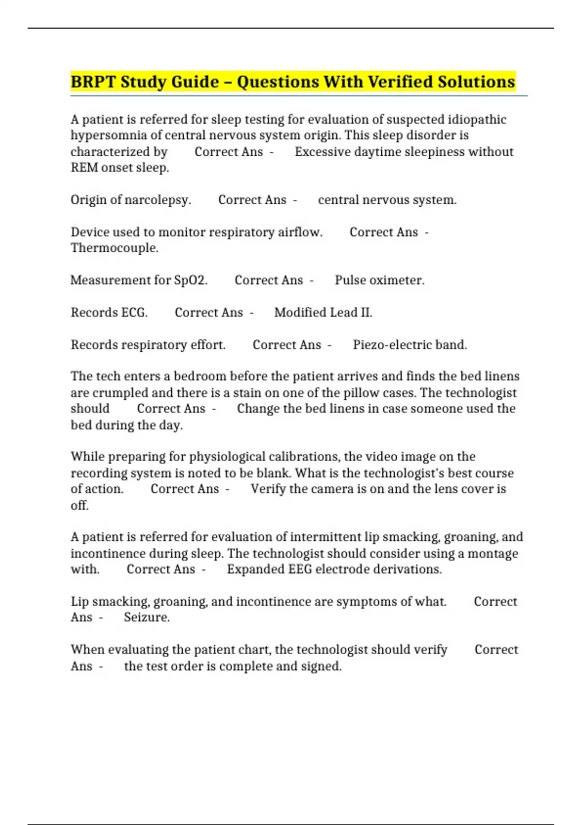 BRPT Study Guide – Questions With Verified Solutions