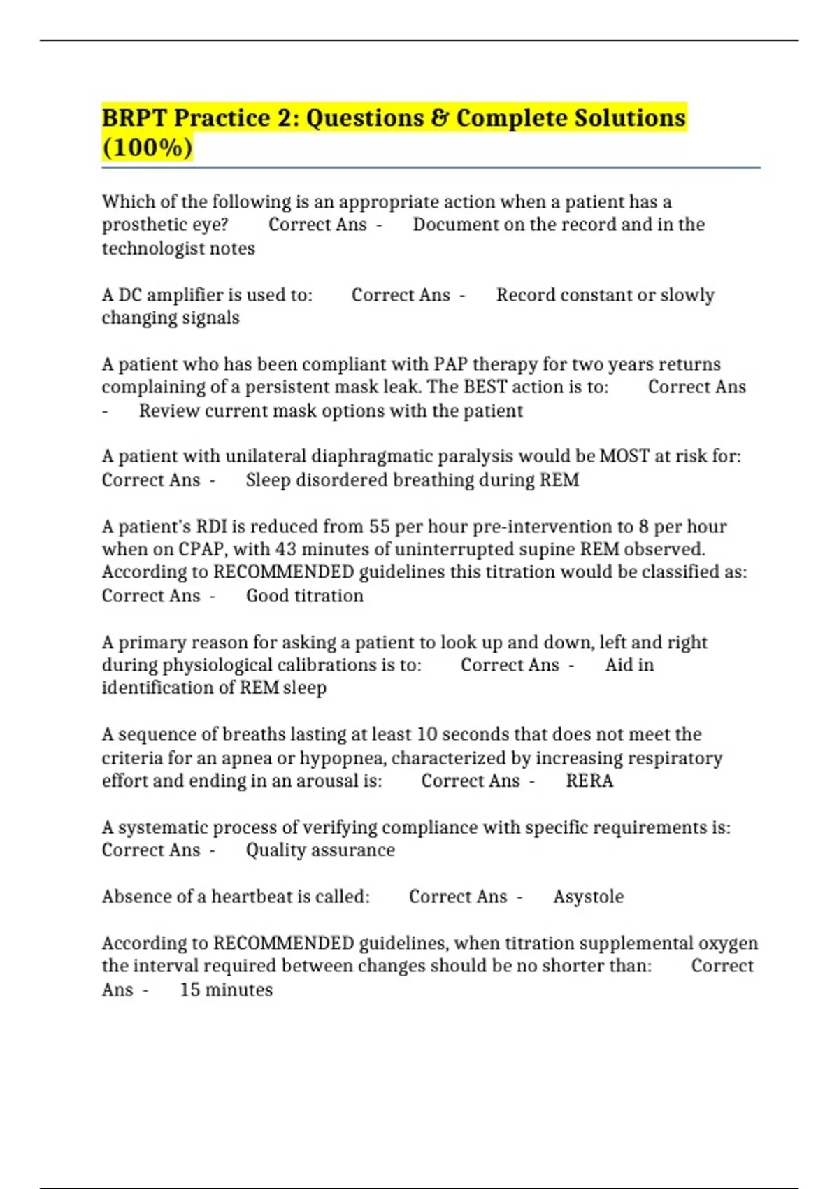 BRPT Practice 2: Questions & Complete Solutions (100%)