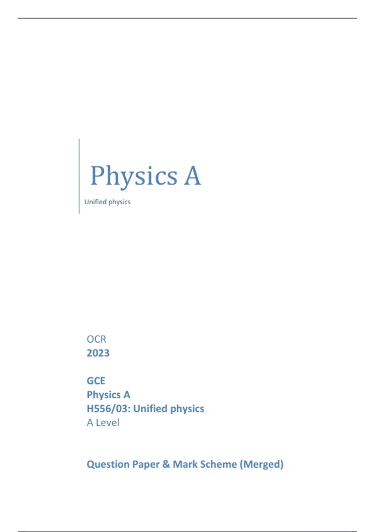 OCR 2023 GCE Physics A H556/03: Unified physics A Level Question Paper & Mark Scheme (Merged)