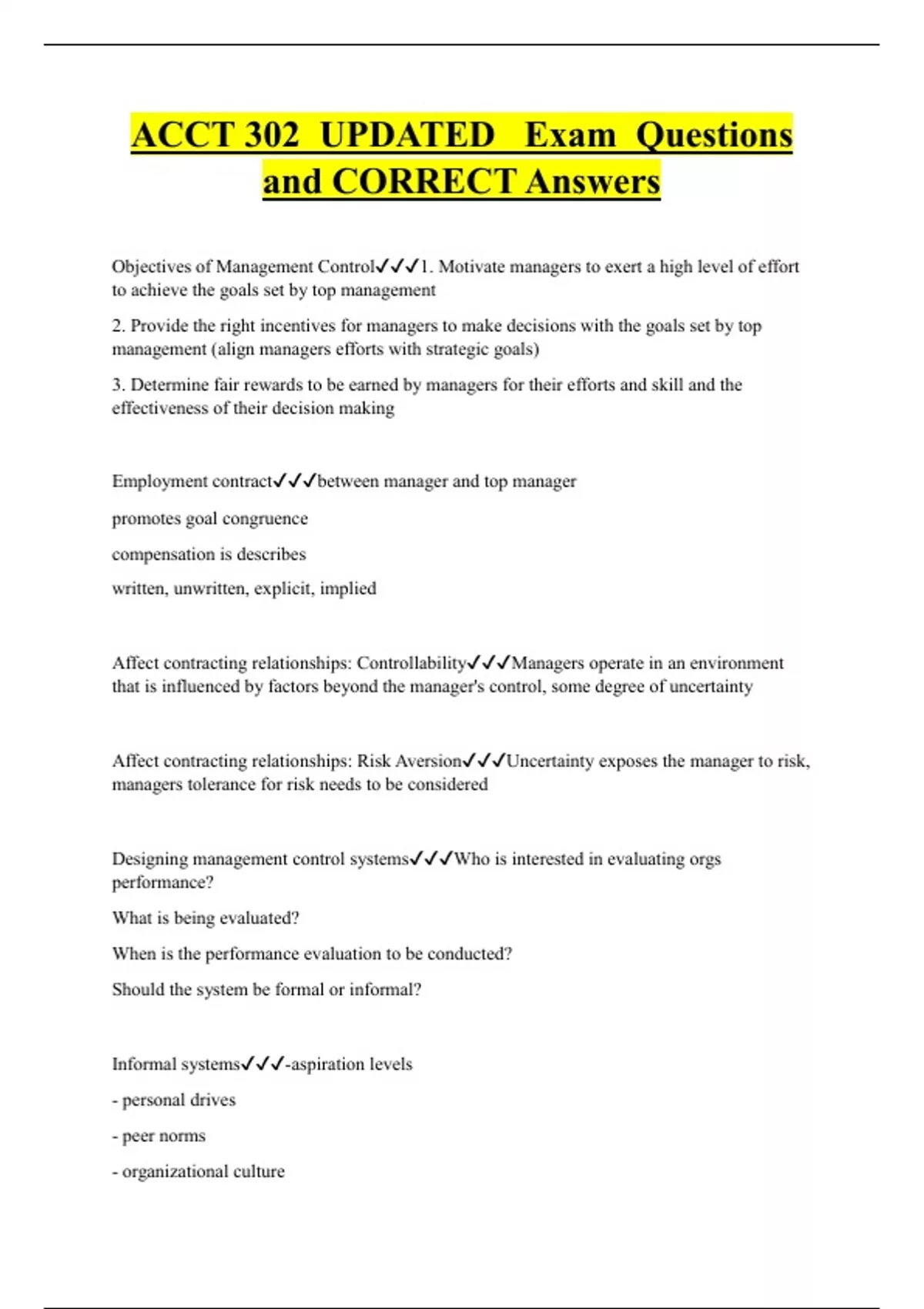 ACCT 302 UPDATED Exam Questions and CORRECT Answers