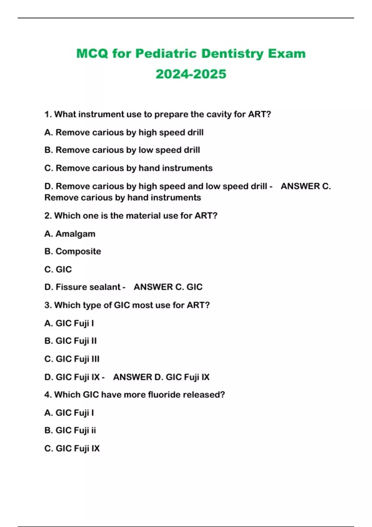 - MCQ for Pediatric Dentistry