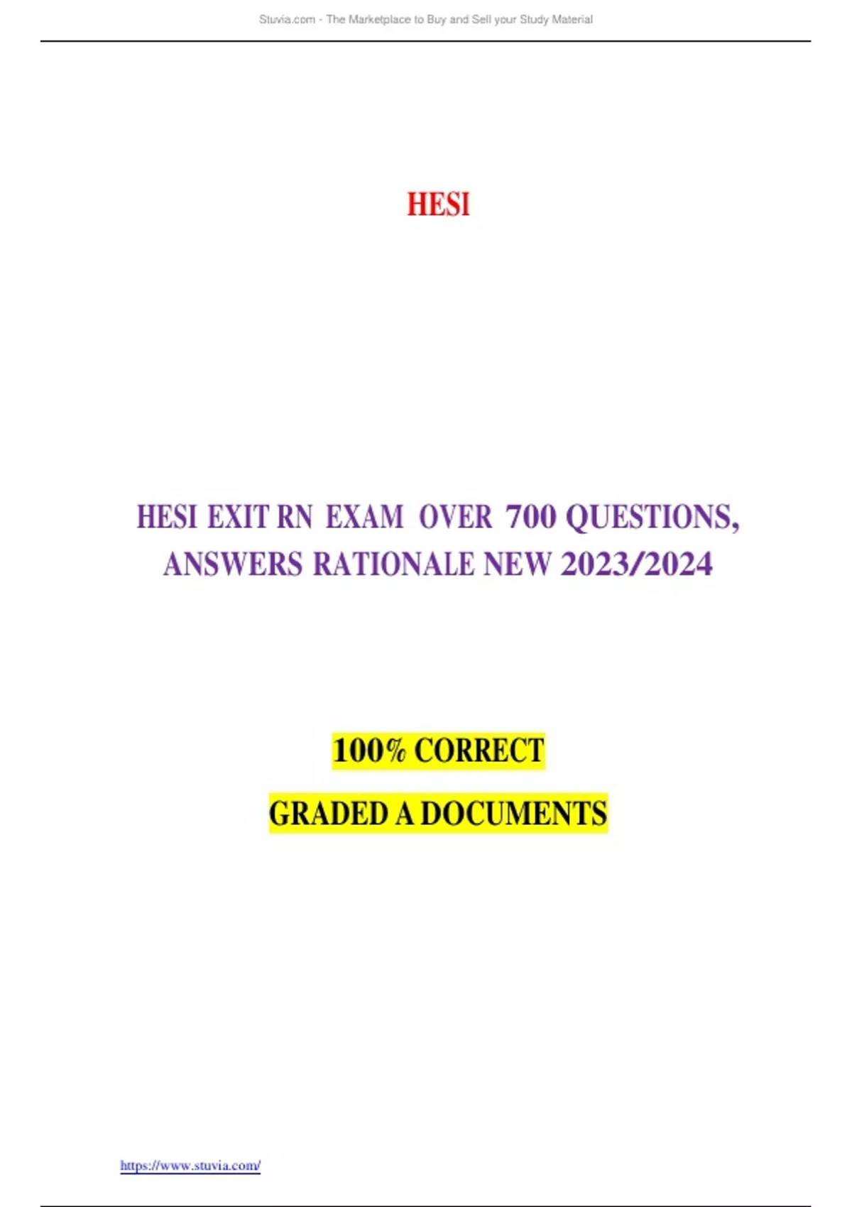 HESI EXIT RN EXAM OVER 700 QUESTIONS, ANSWERS RATIONALE NEW 2023.2024 LATEST A+ GRADED DOCUMENT.