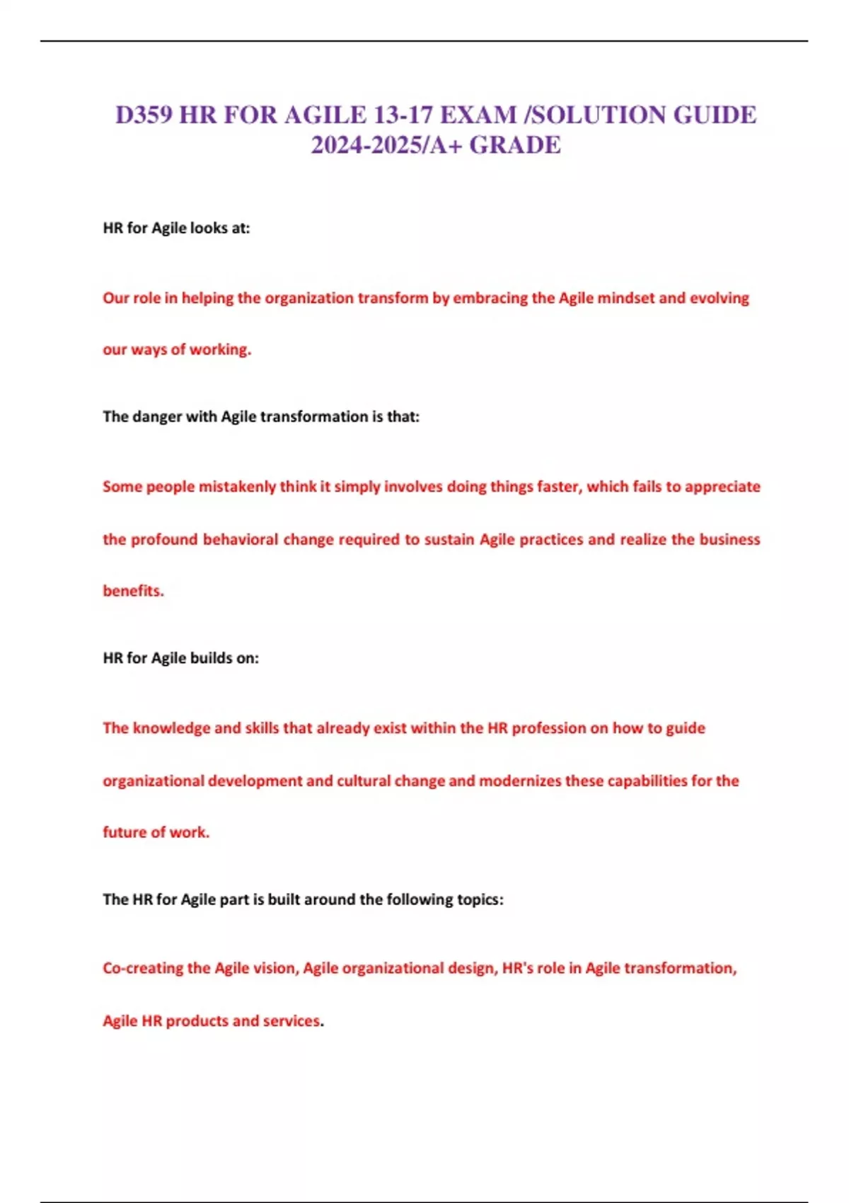 D359 HR FOR AGILE 13-17 EXAM /SOLUTION GUIDE /A+ GRADE
