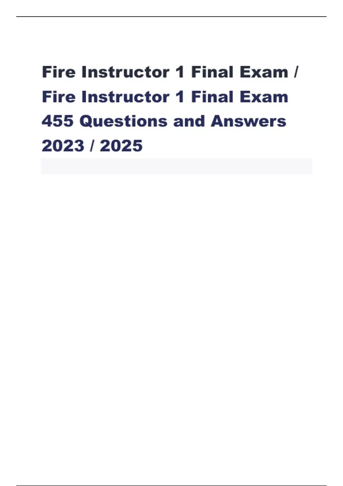 Fire Instructor 1 Final Exam / Fire Instructor 1 Final Exam 455 Questions and Answers 2023 / 2025