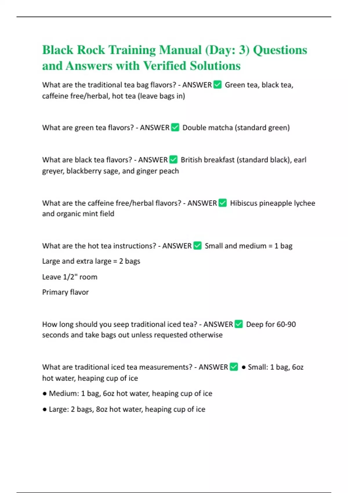 Black Rock Training Manual (Day: 3) Questions and Answers with Verified Solutions
