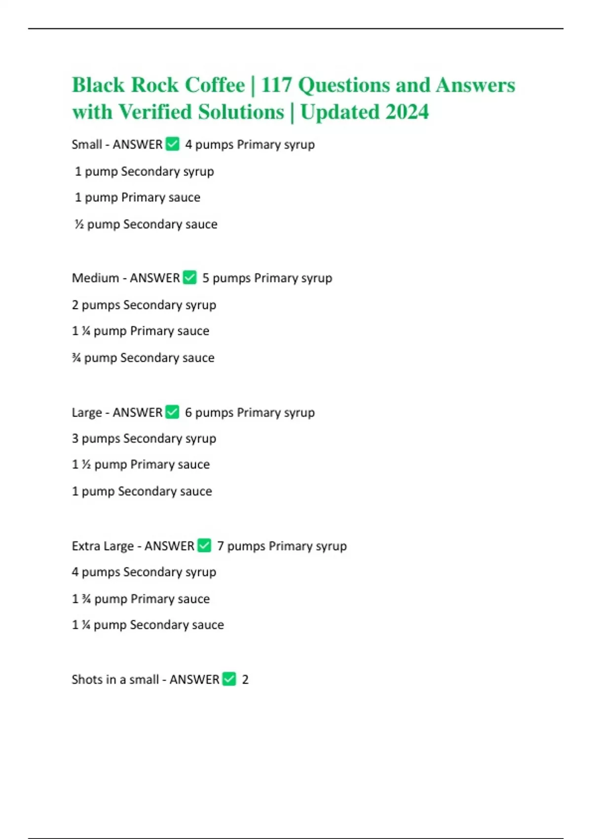 Black Rock Coffee | 117 Questions and Answers with Verified Solutions | Updated 2024