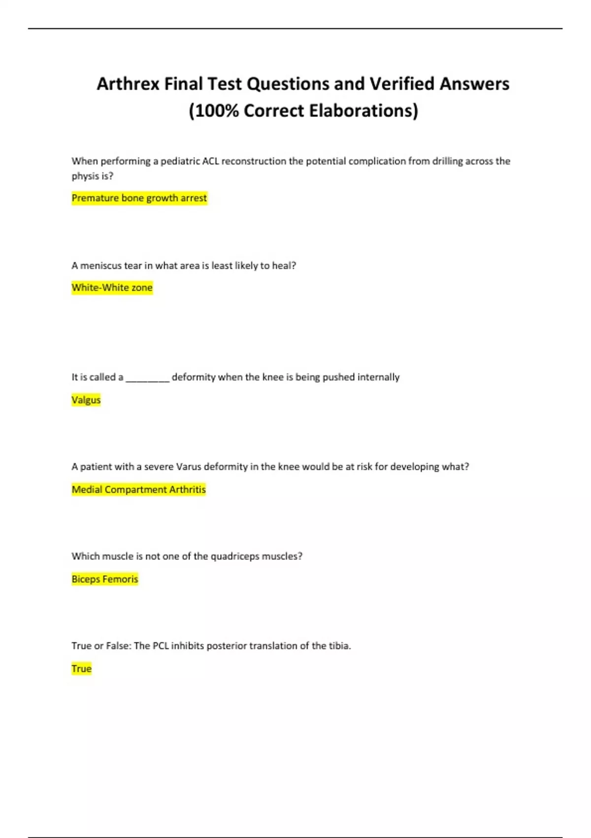 Arthrex Final Test Questions and Verified Answers (100% Correct Elaborations)