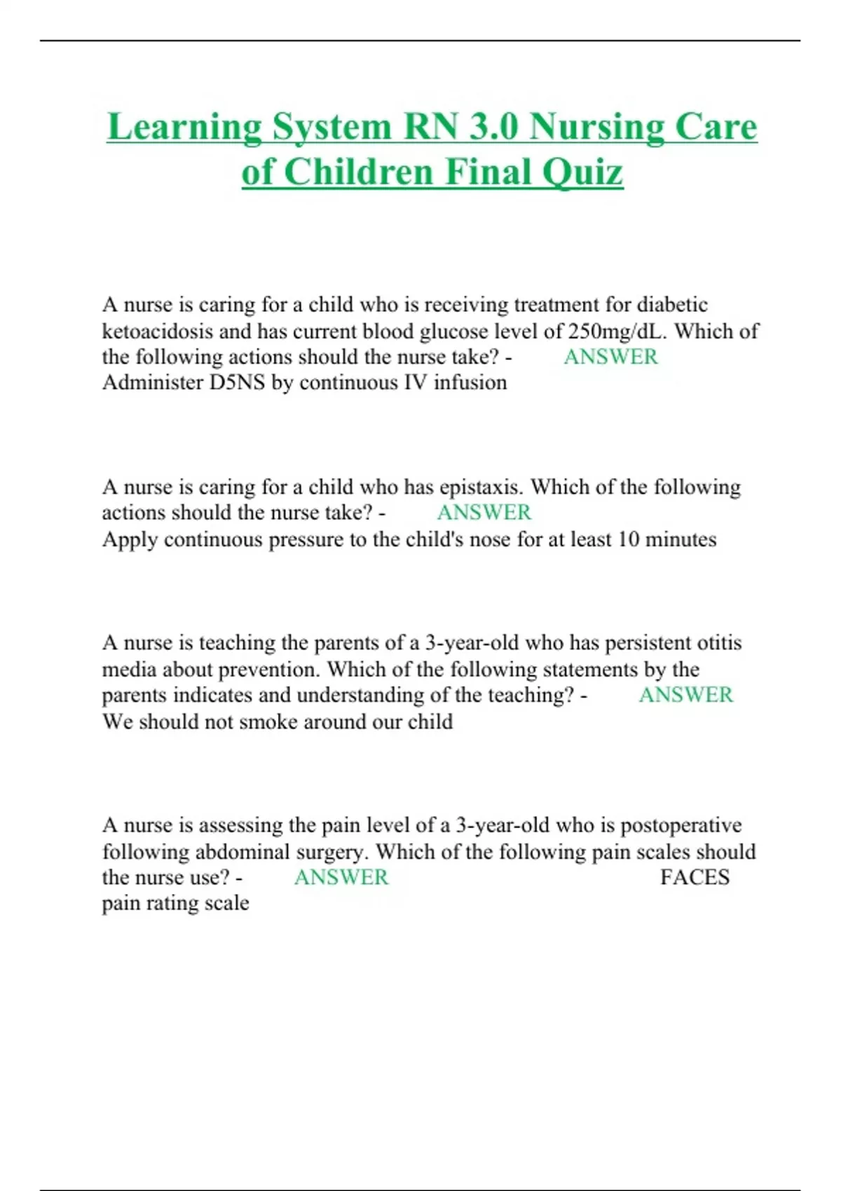 Learning System RN 3.0 Nursing Care of Children Final Quiz Learning System RN 3.0 Nursing Care of Children Final Quiz
