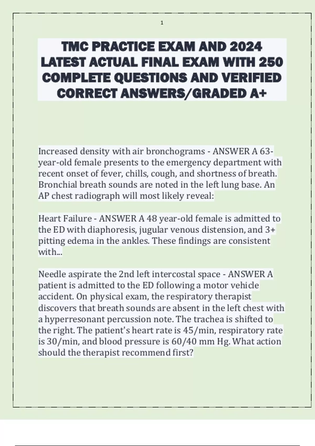 TMC PRACTICE EXAM AND 2024 LATEST ACTUAL FINAL EXAM WITH 250 COMPLETE QUESTIONS AND VERIFIED CORRECT ANSWERS/GRADED A+
