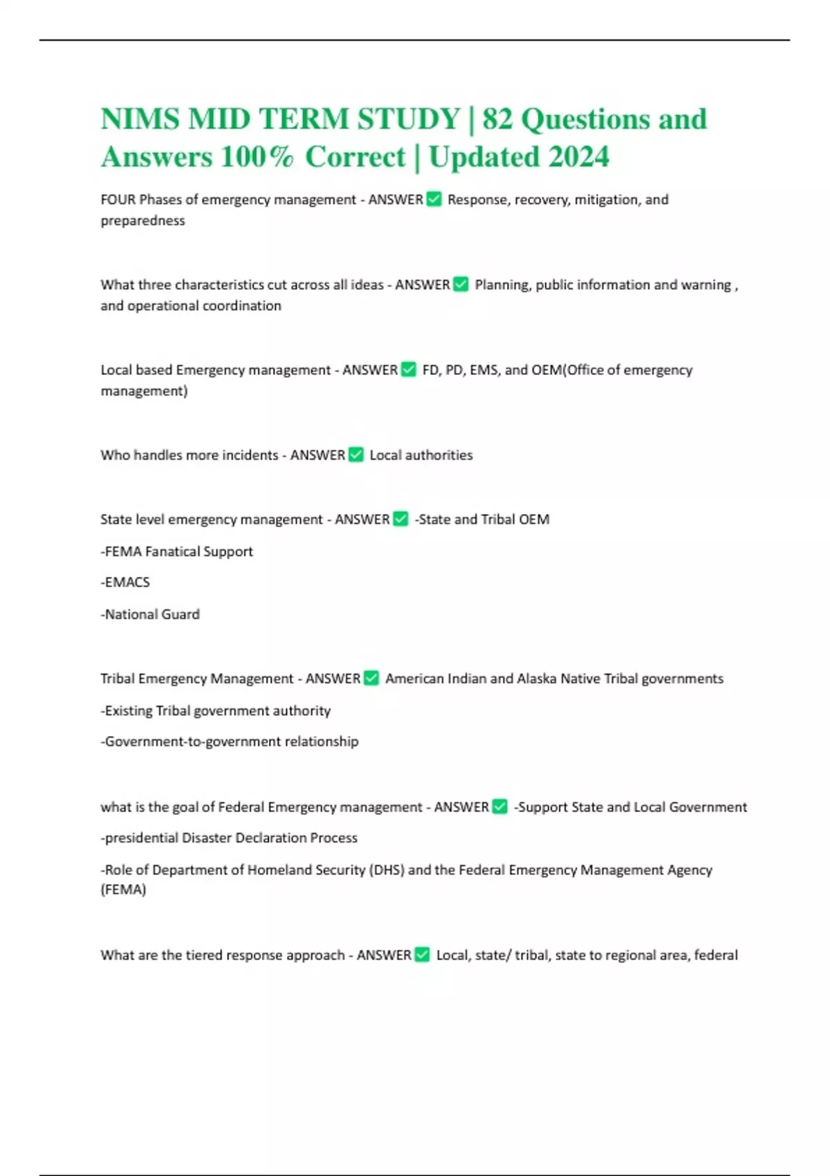 NIMS MID TERM STUDY | 82 Questions and Answers 100% Correct | Updated 2024