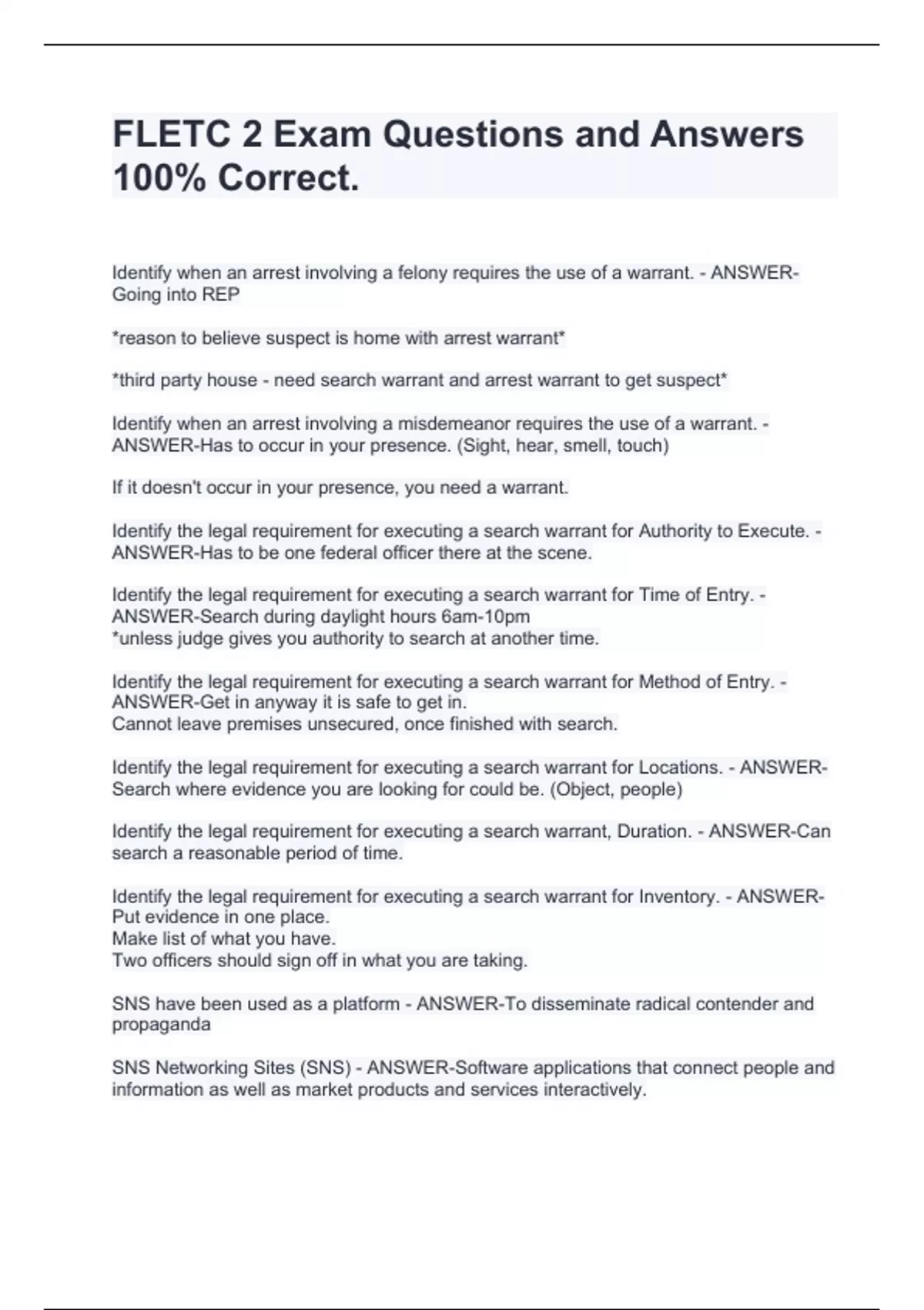 - fletc 2 exam stuvia