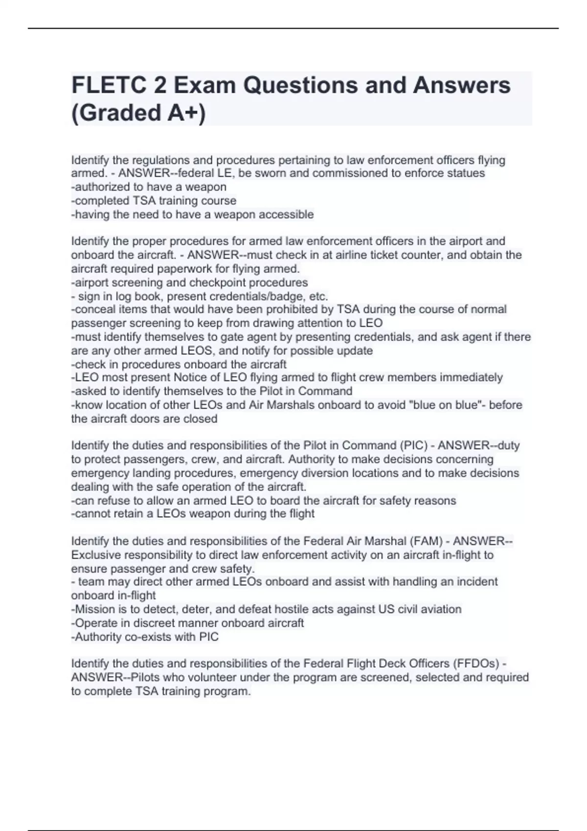 - fletc 2 exam stuvia