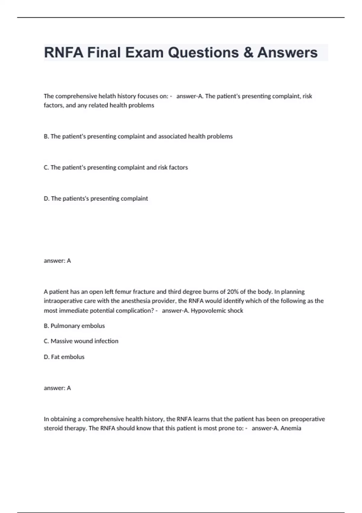 rnfa final exam questions answers