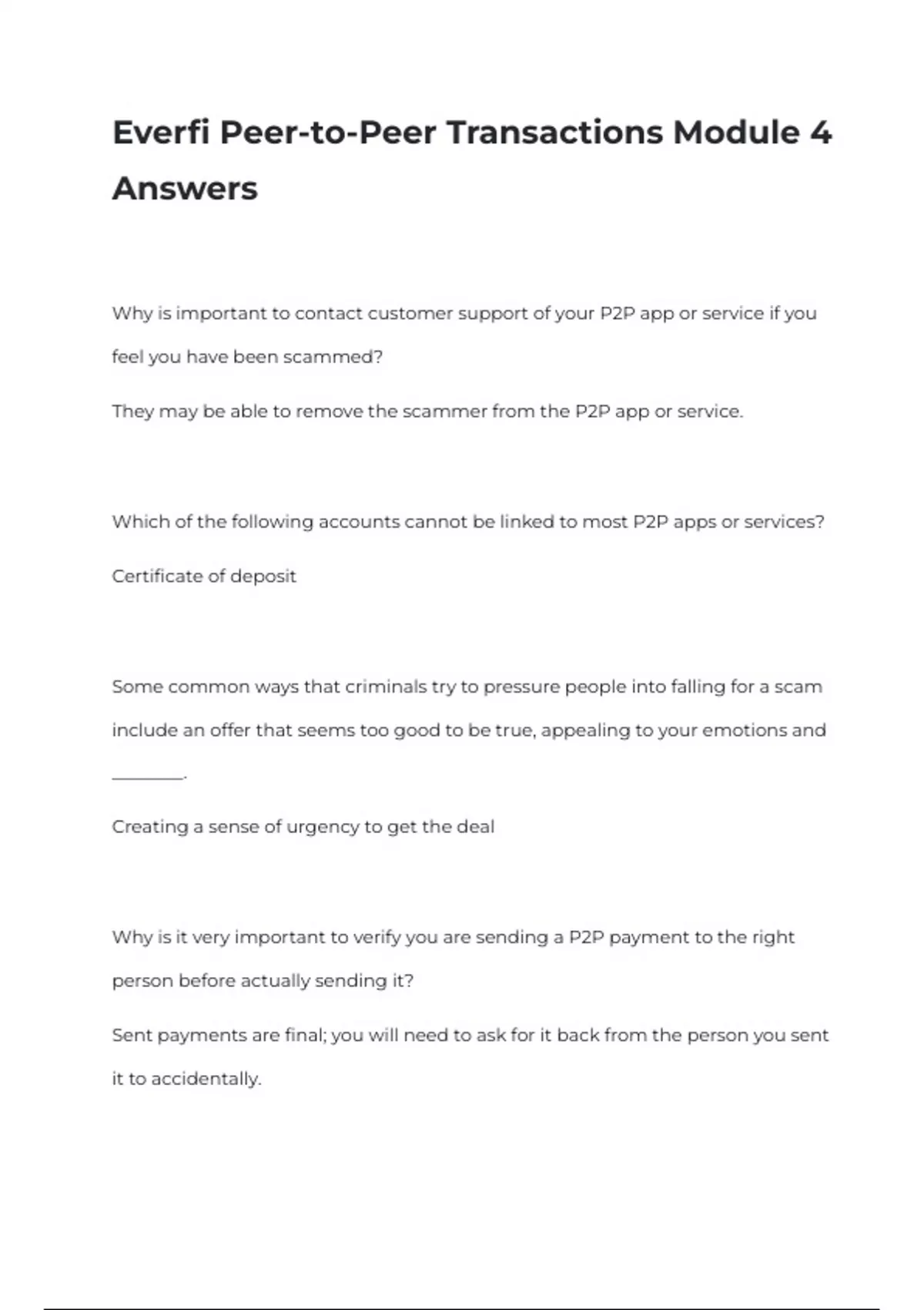 Everfi Peer-to-Peer Transactions Module 4 Answers.