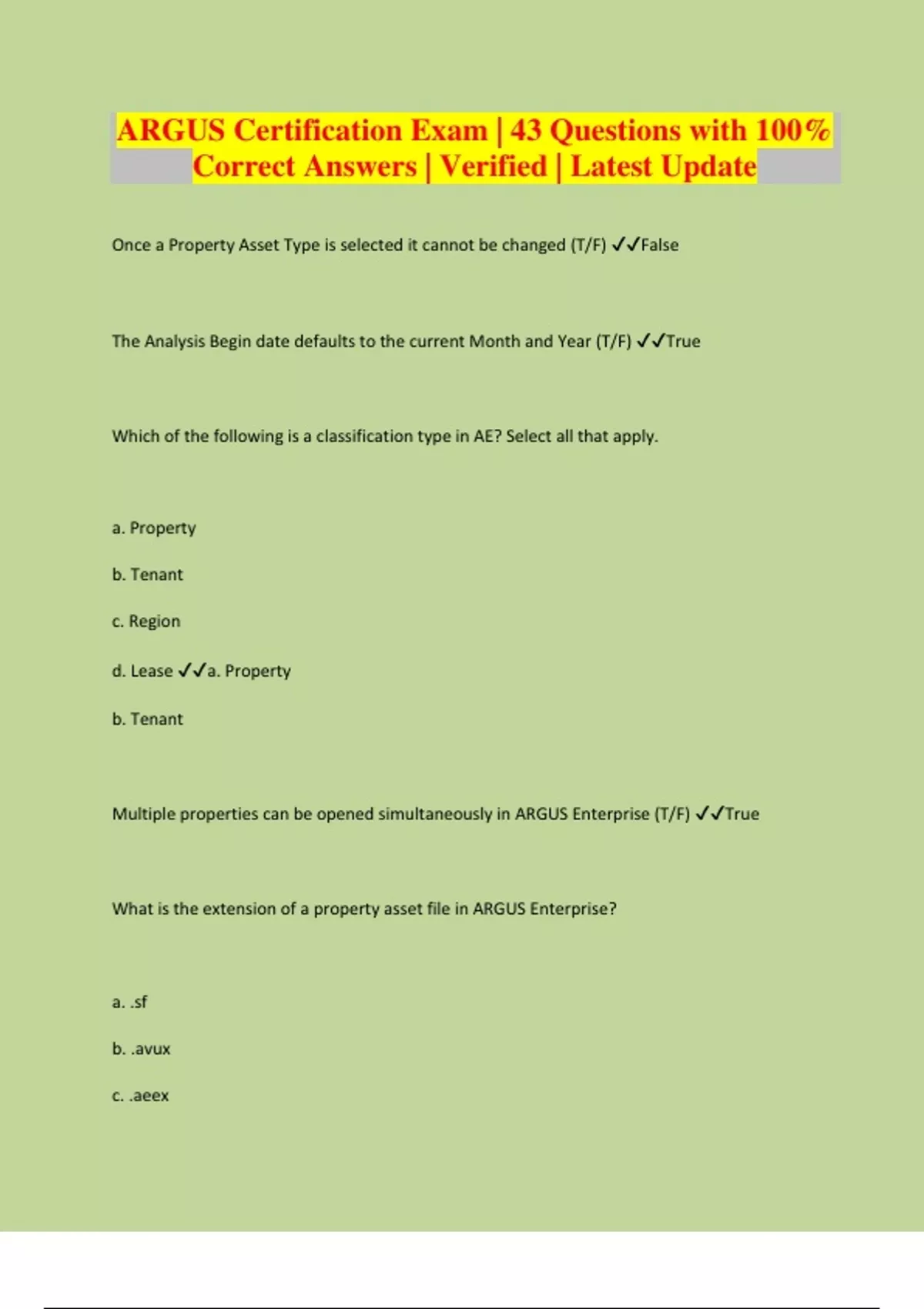 ARGUS Certification Exam | 43 Questions with 100% Correct Answers | Verified | Latest Update