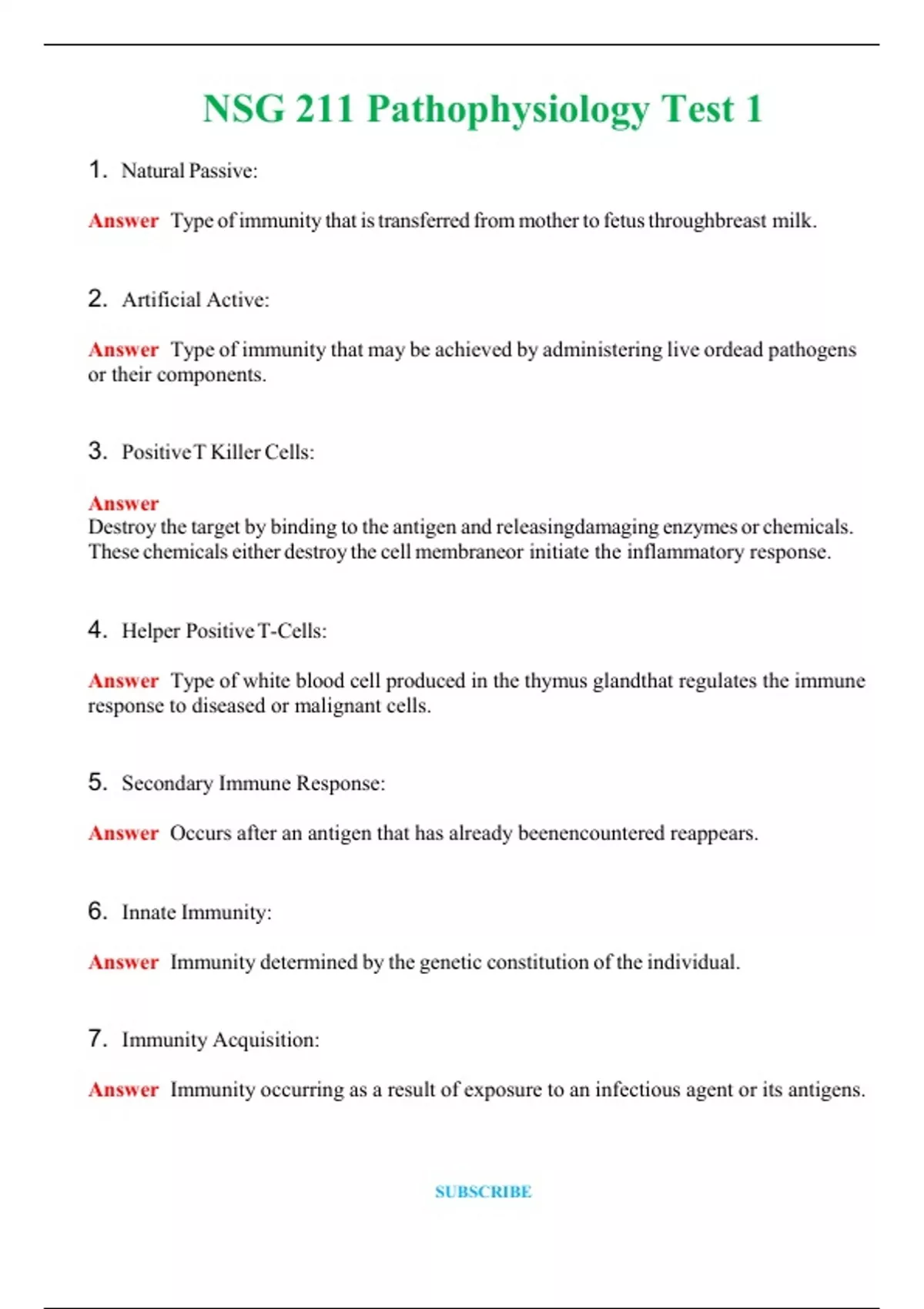 NSG 211 Pathophysiology Test 1 Actual Exam 2024 Q & A (Graded A+ )