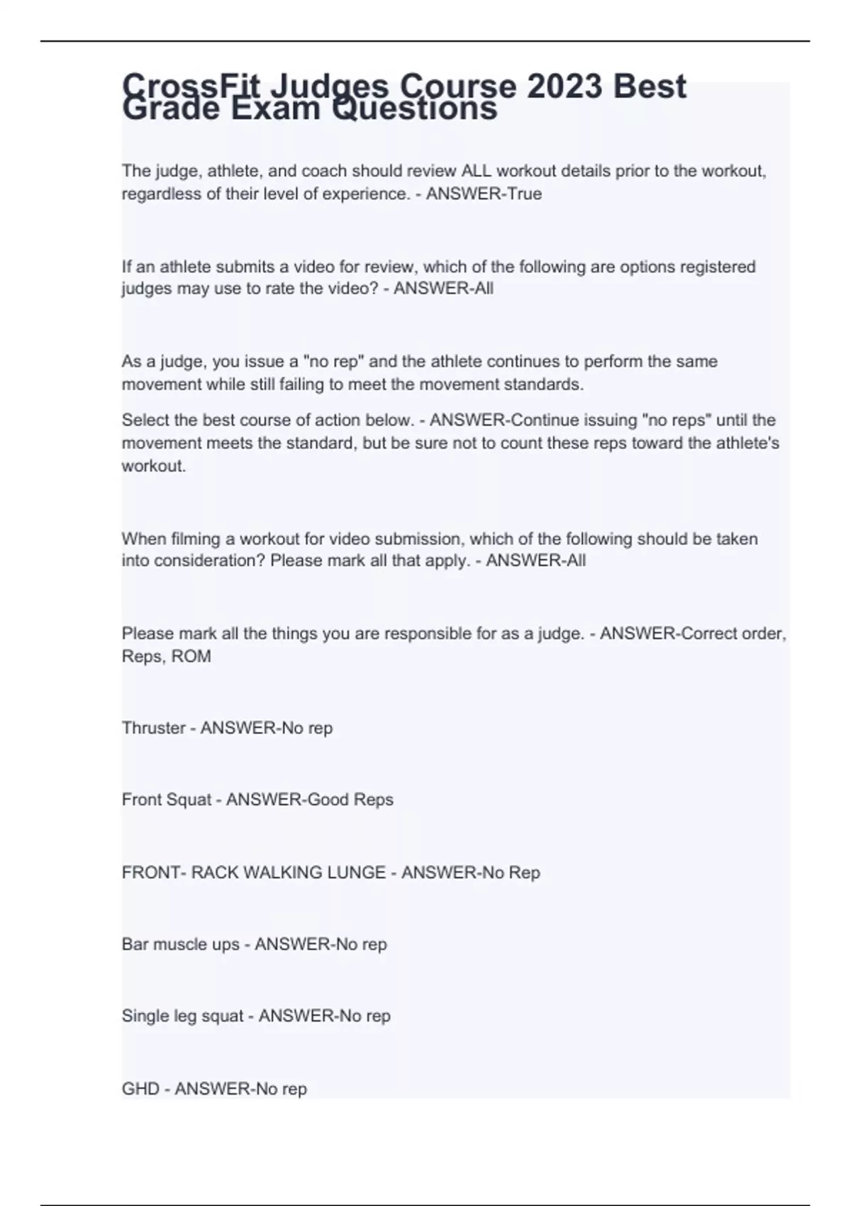 CrossFit Judges Course 2023 Best Grade Exam Questions