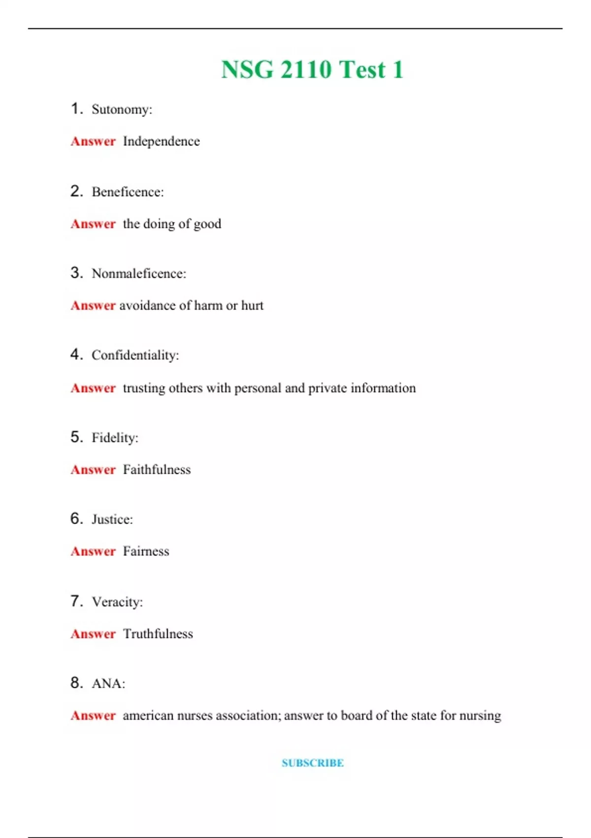 NSG 211 Test 1 Actual Exam 2024 Q & A (Graded A+ )