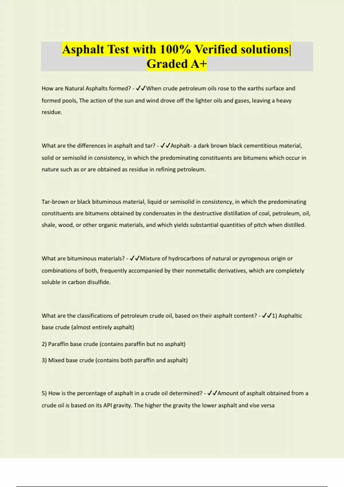 Asphalt Test with 100% Verified solutions| Graded A+
