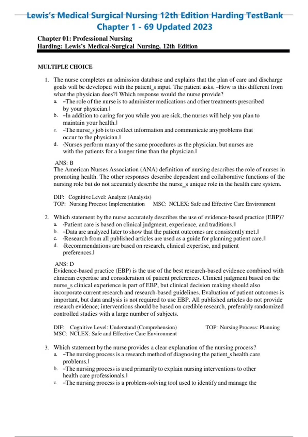 Harding: Lewis’s Medical-Surgical Nursing, 12th Edition