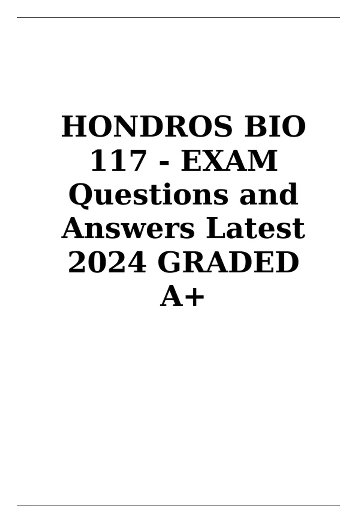HONDROS BIO 117 - EXAM Questions and Answers Latest 2024 GRADED A+