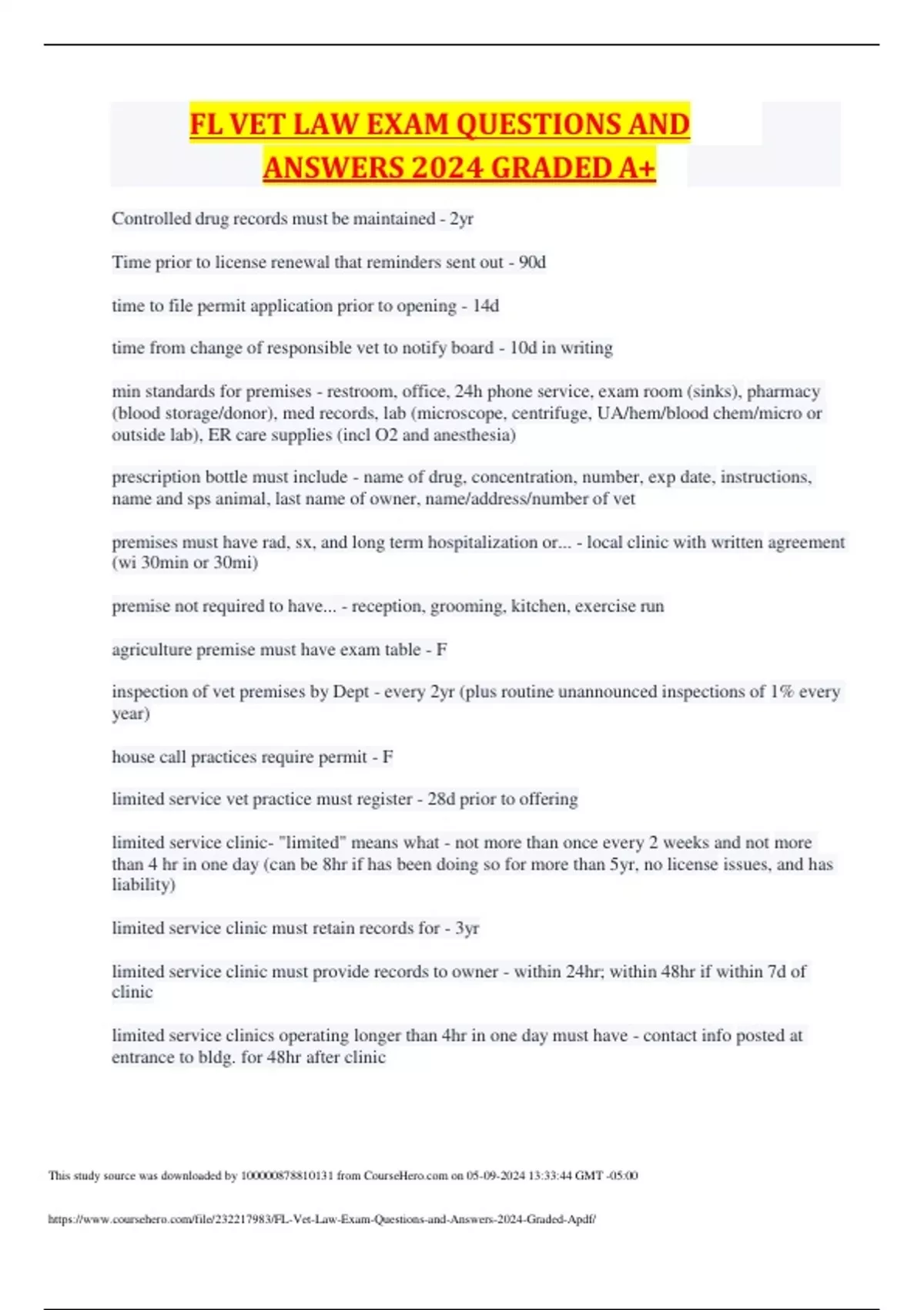 fl vet law exam questions and answers 2024 graded