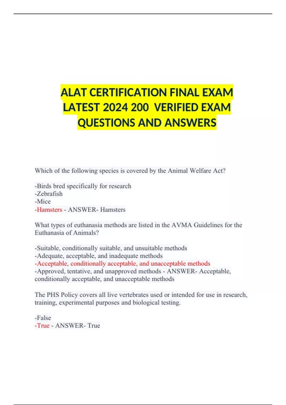 ALAT CERTIFICATION FINAL EXAM LATEST 2024 200 VERIFIED EXAM QUESTIONS AND ANSWERS