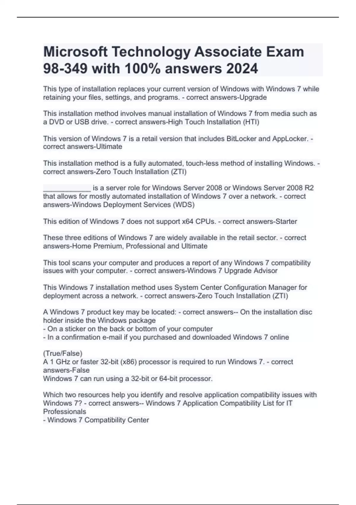 Microsoft Technology Associate Exam 98-349 with 100% answers 2024